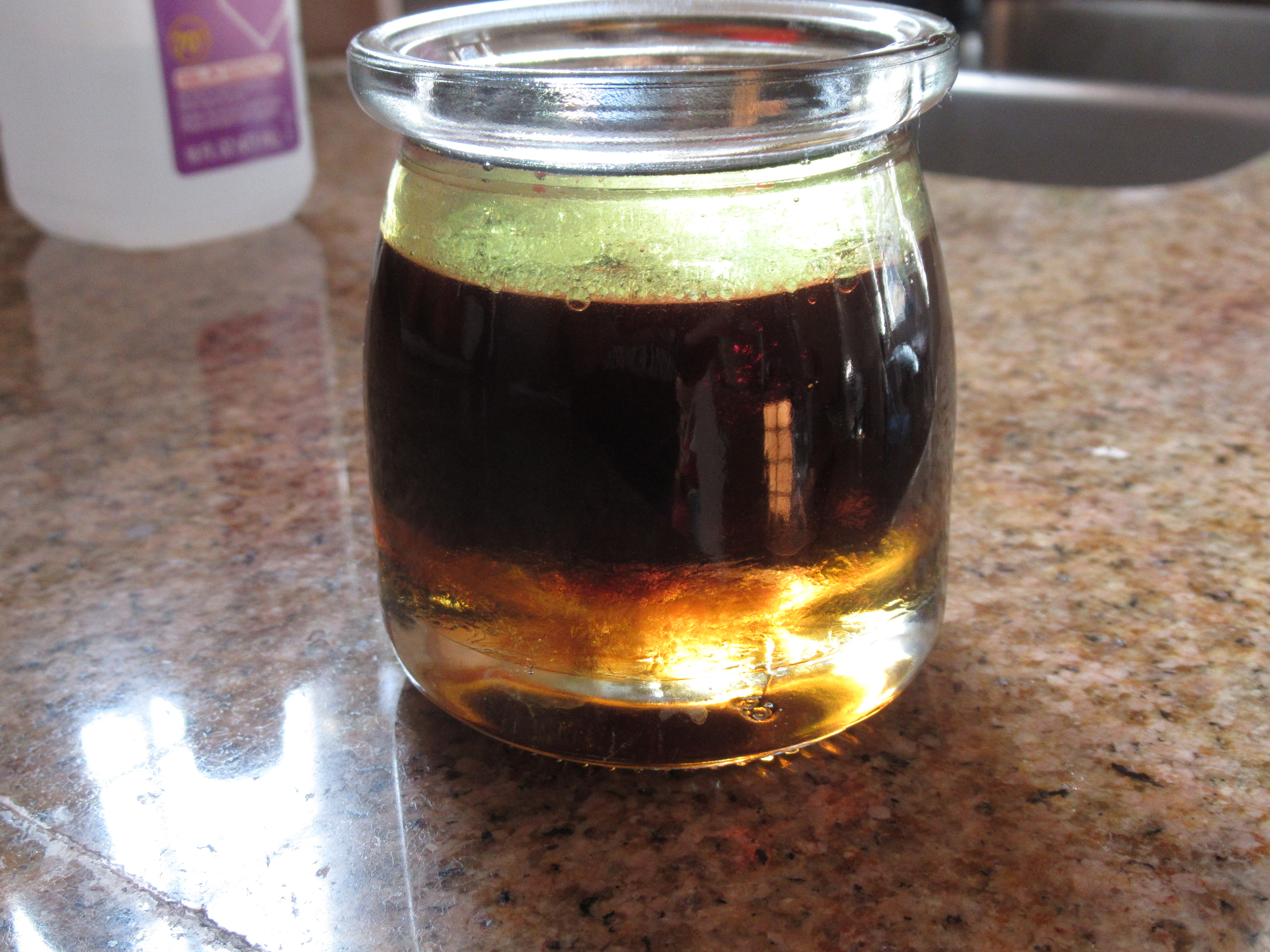 The red alcohol on top was hard to see, but the rest of the layers were quite well demarcated. Overall, this was a neat little STEM experiment in a jar.