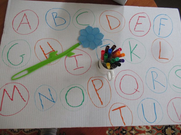 Veronika was feeling a little under the weather with a sniffle today, so I was on the hunt for games we could play while cozy on the couch. What could be lazier than a lazy Susan?