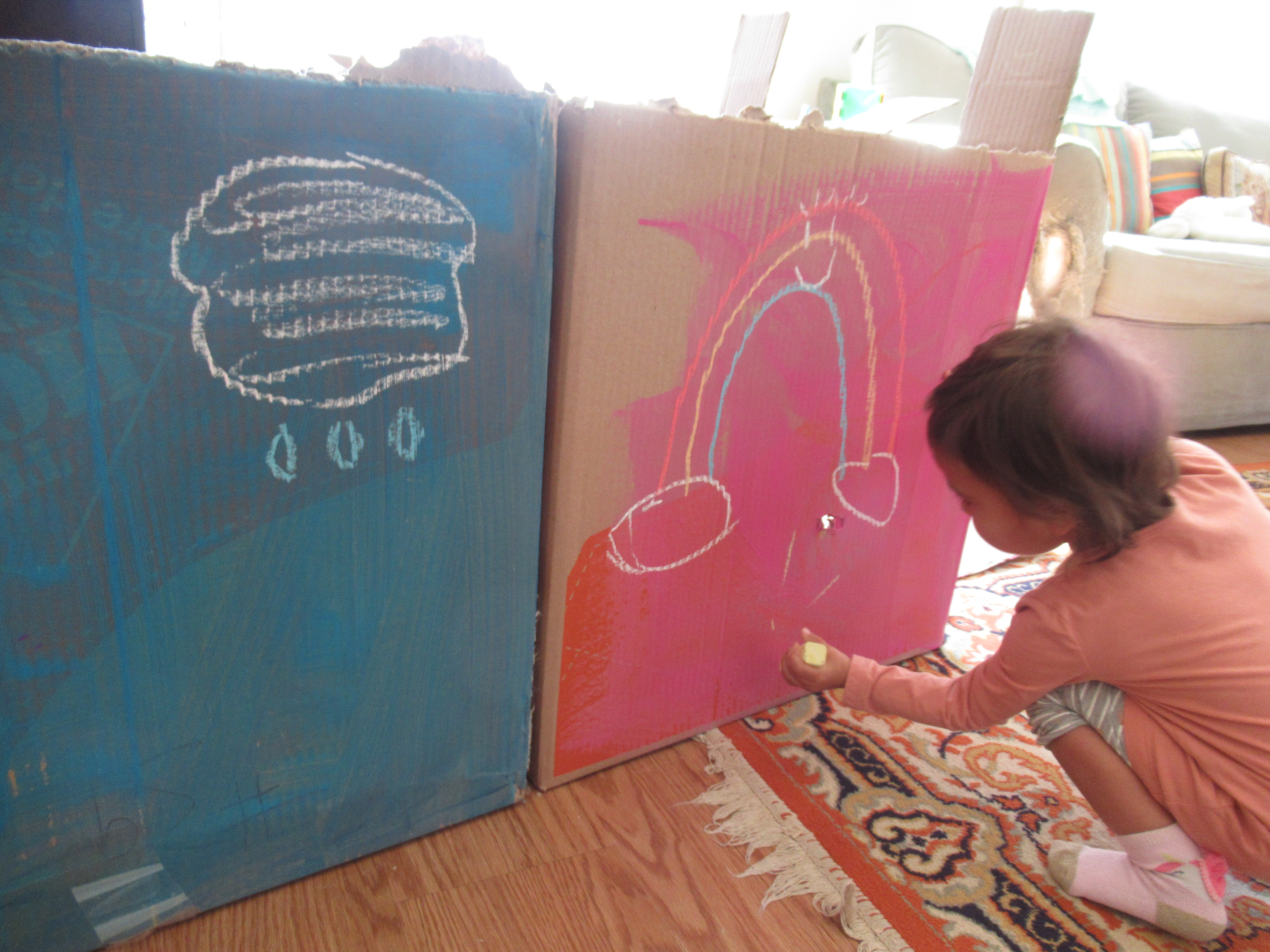 This giant color “dice” is a fun way to play with toddlers or preschoolers for a variety of color games. Even better, all you need to make it is two upcycled cartons (I used soy milk).