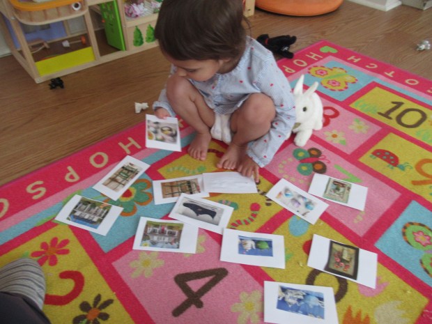 Then we added toy animals who could play on the farm. Veronika loved sprinkling the cedar down on them, or burying them underneath the shavings.