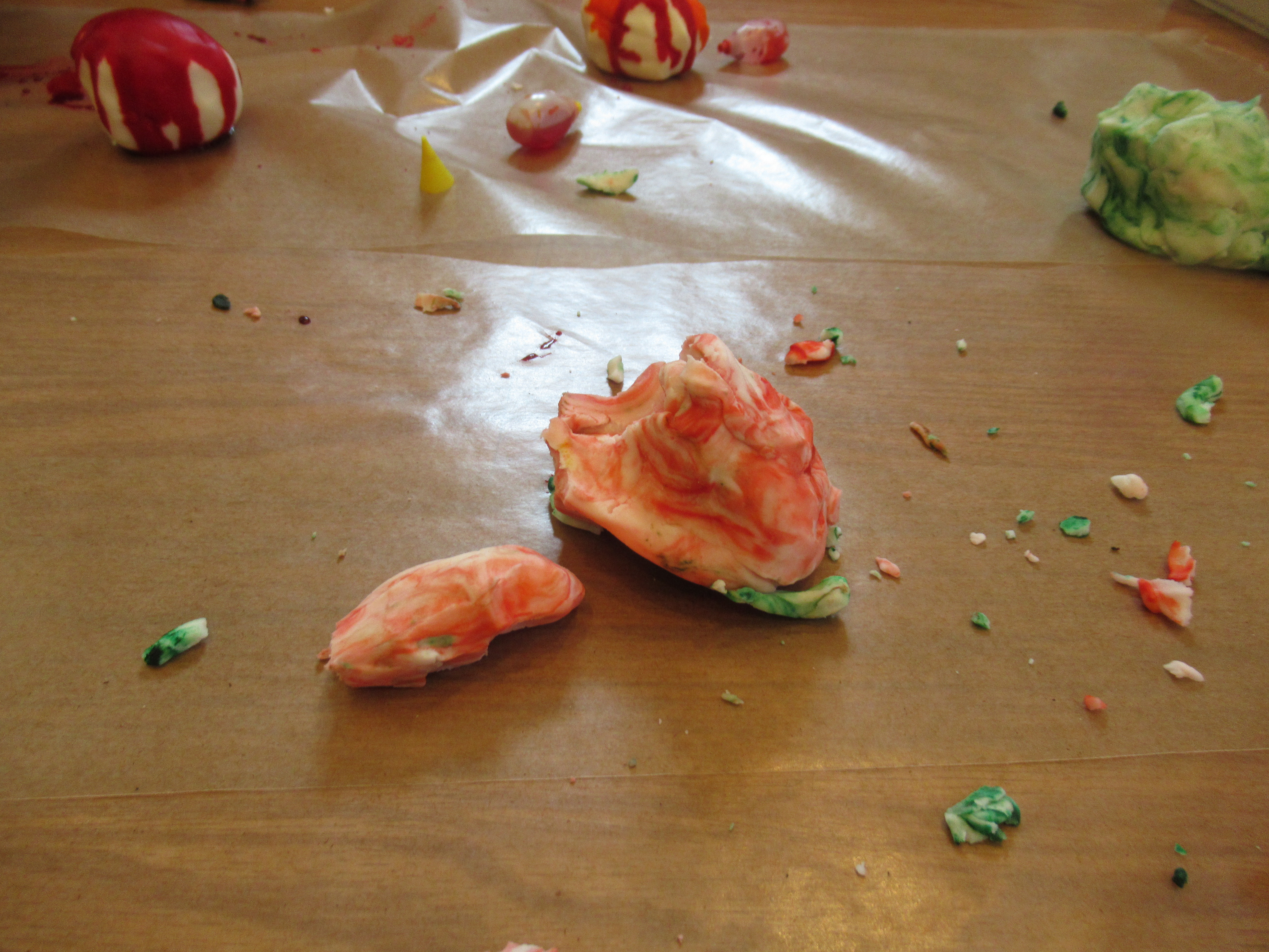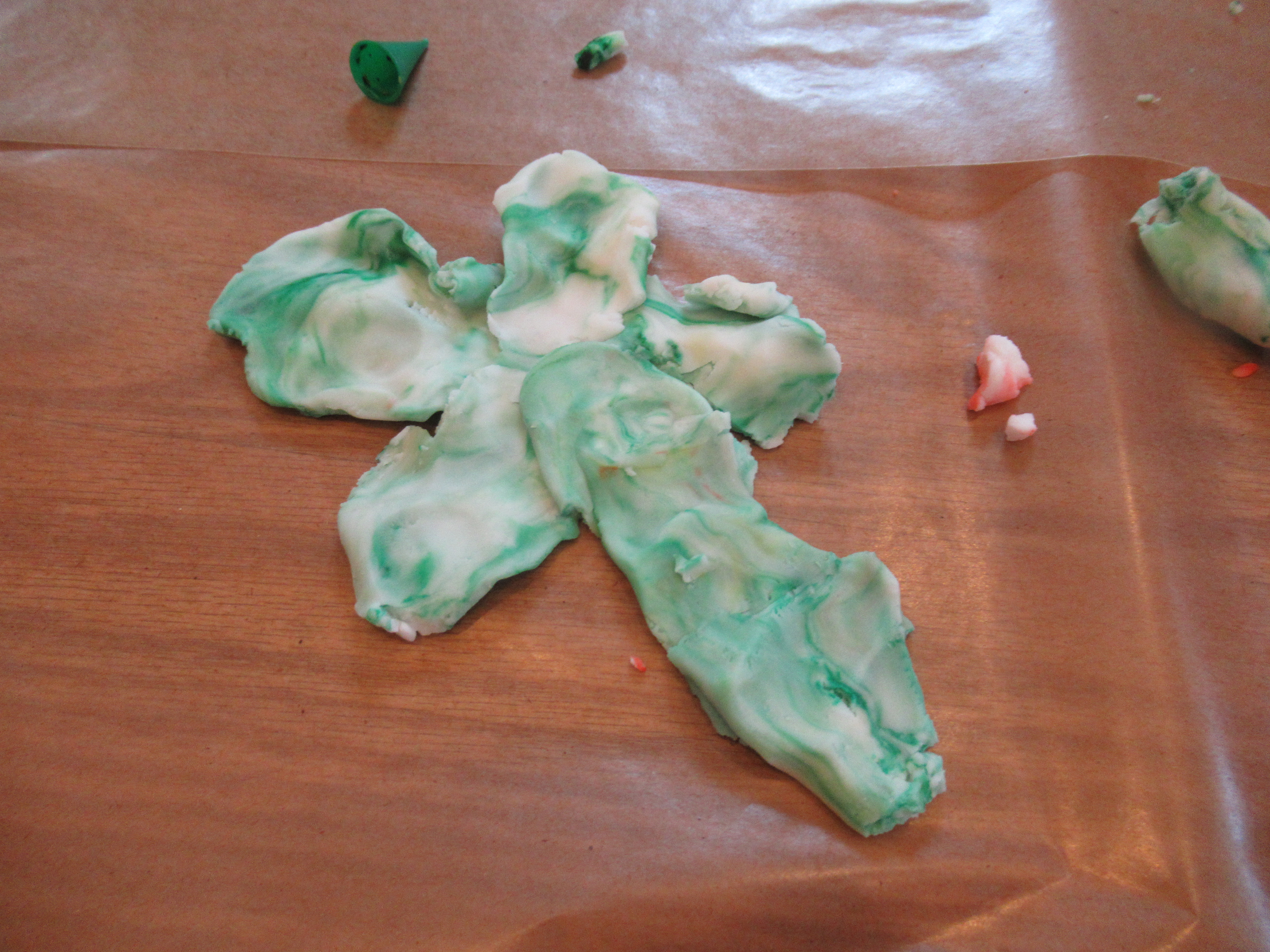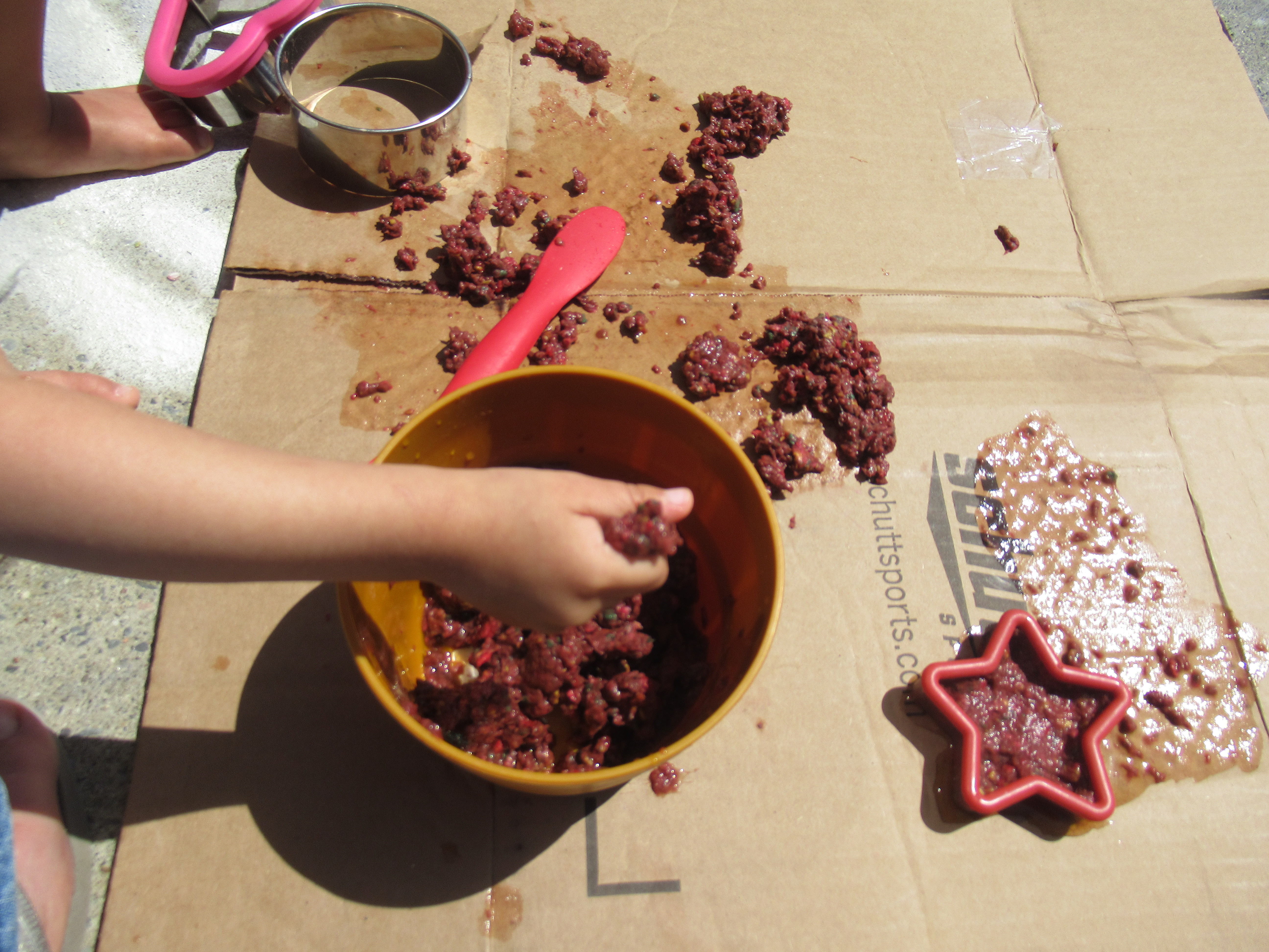 Luckily, I did manage to salvage two cookie cutter shapes: one star and one circle, and left these to dry in the sun. After about 5 hours, we checked on the shapes. They weren’t completely dry, but had set enough that we could remove the cookie cutters and then finish the drying process inside.
