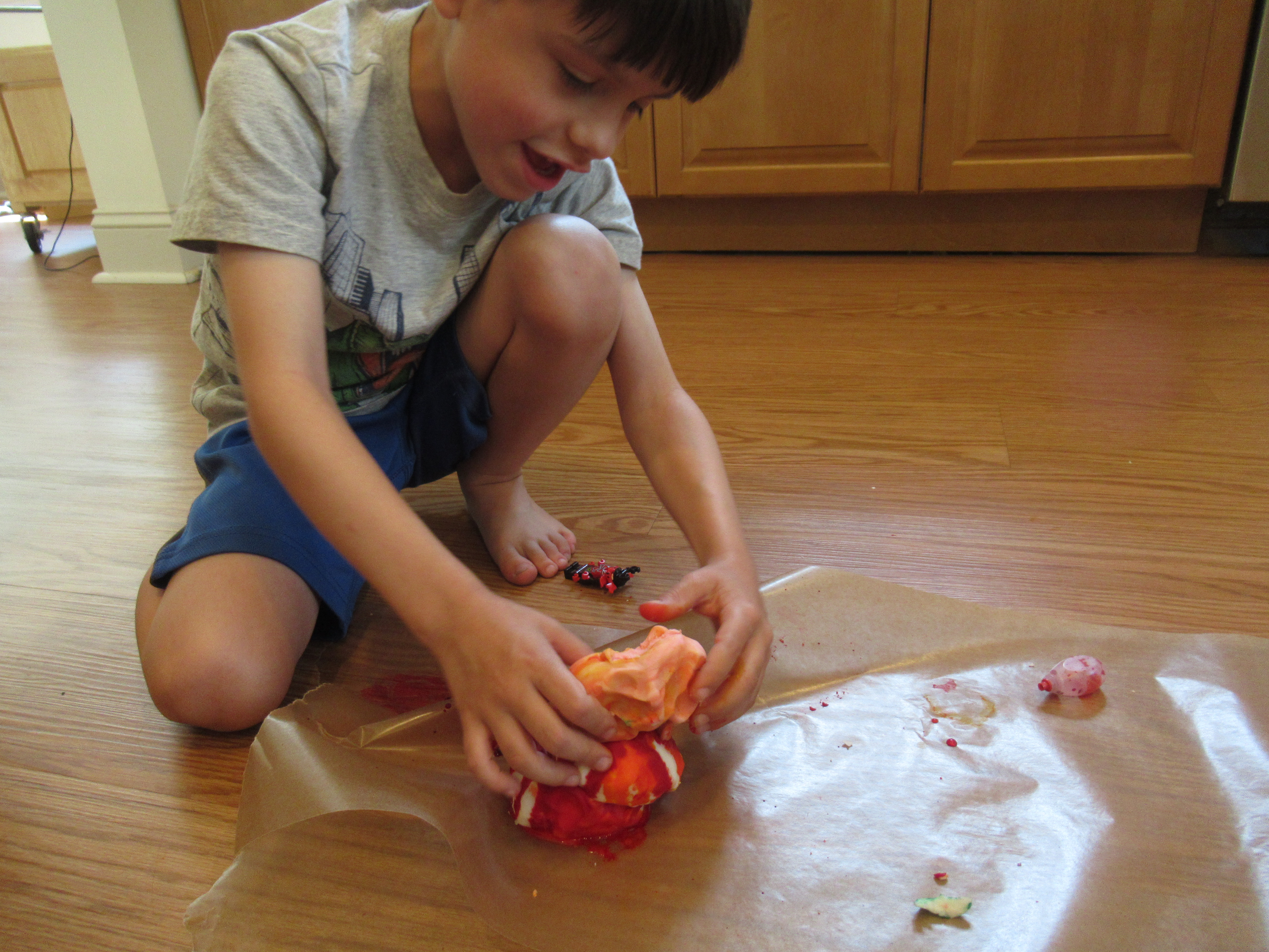 We headed out for a few activities, then came home to check on the paper. Nice and soggy! We transferred it to a blender, along with a little extra water. Blend until you have a thick paste. I didn’t measure the water, so just eyeball this until it seems right; you don’t want the mixture to be soupy, but you also don’t want it to seem too dry.