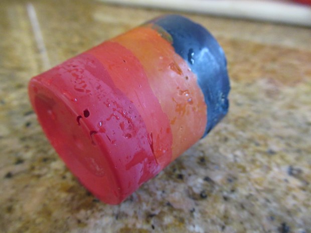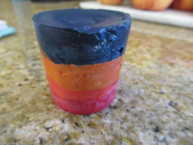 Still, the end result was a beautifully-layered crayon. Snip off the plastic container and hand over to your waiting toddler.