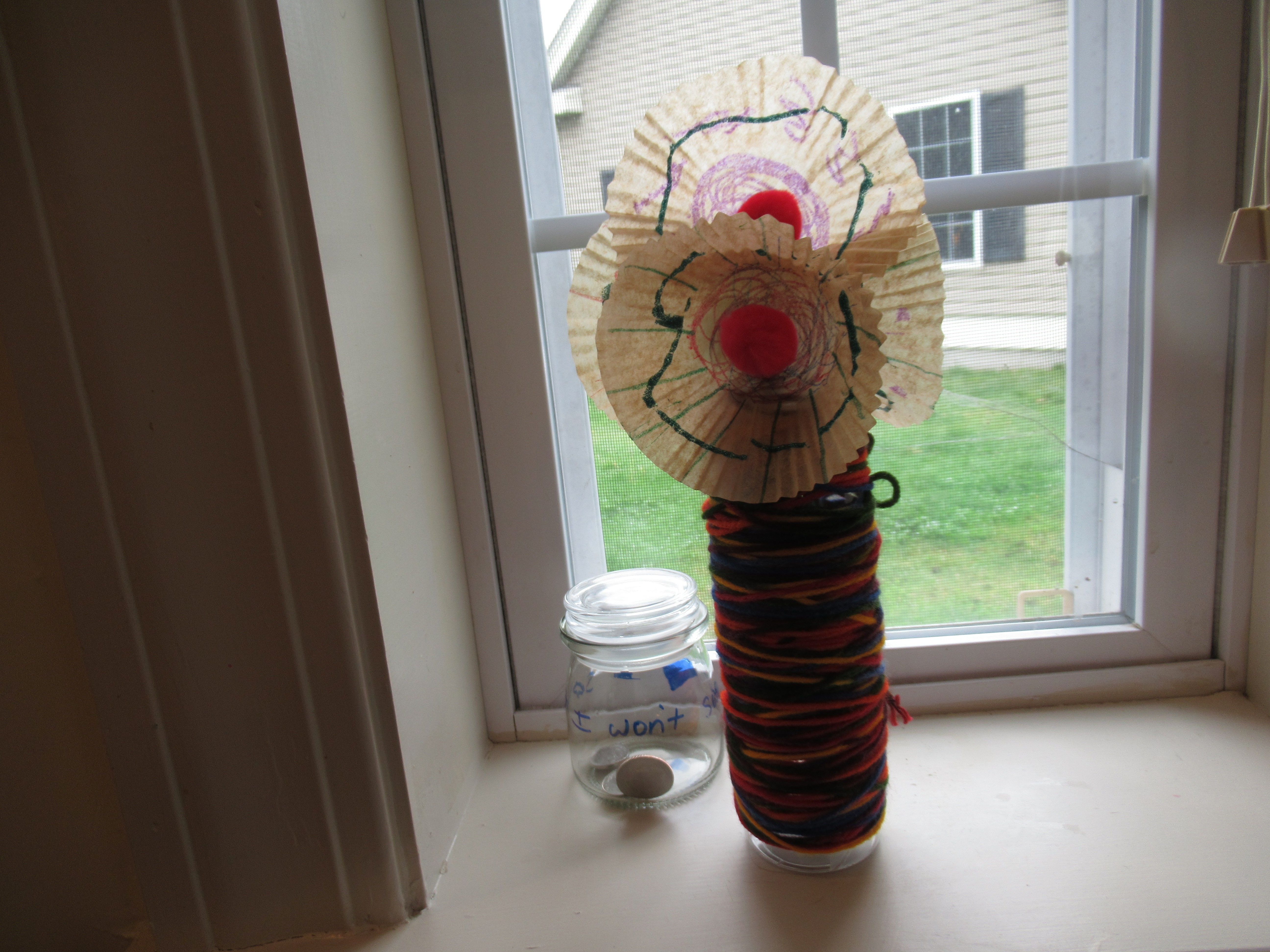 To make this easy to take along in the car, punch a hole in the corner of the picture and in a corner of the bag, then attach them together with a small length of yarn or string.