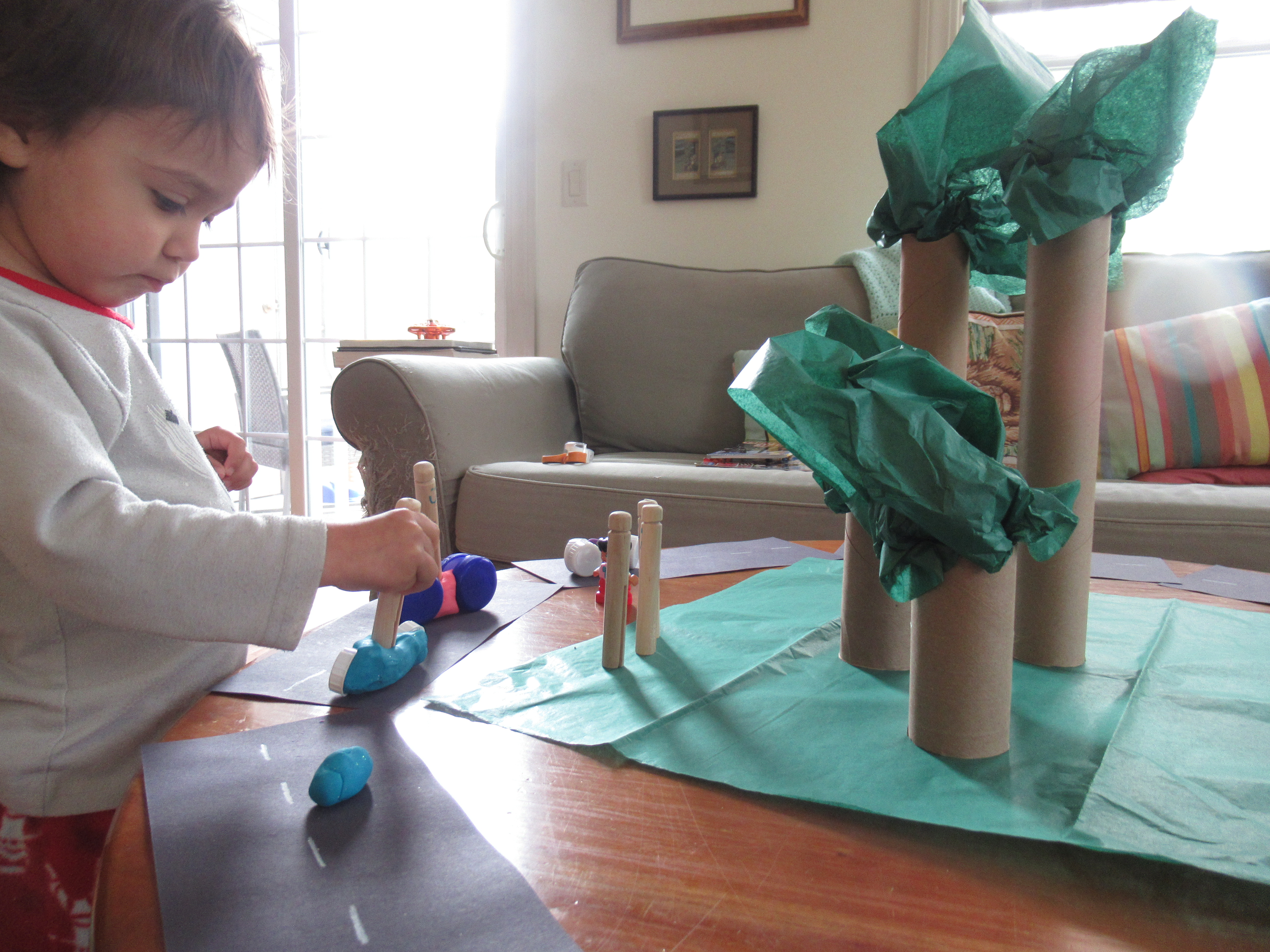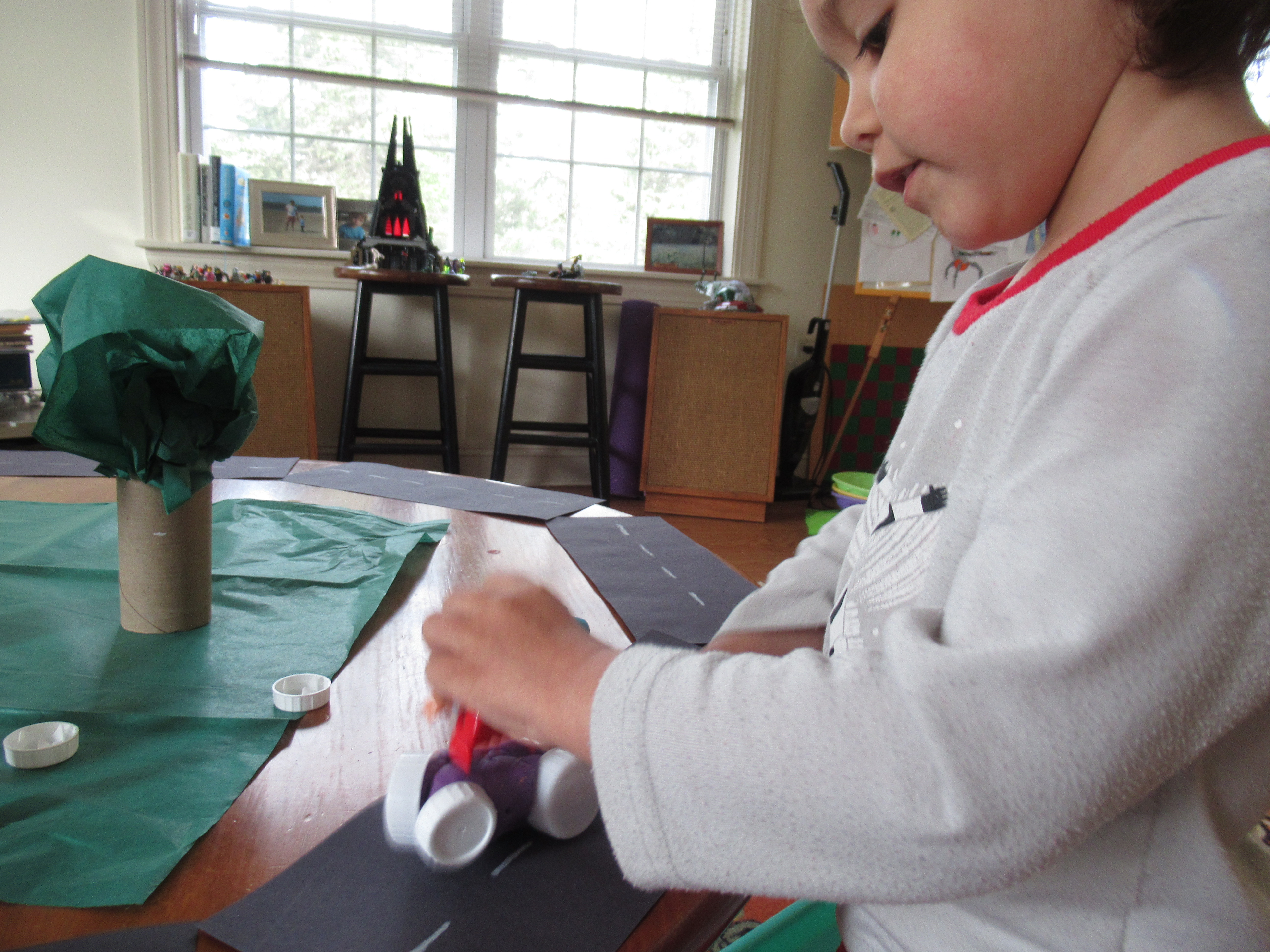The colors bleed through the tissue of these papers in such beautiful ways. Veronika loved mixing the colors, too, which meant our bright primary colors soon turned to new shades.