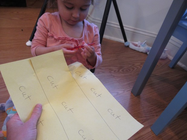 This was a cute variation on the simplest kind of “what sinks and what floats” activities for toddlers. Alternatively you could have your child gather toys from around the house, but using items from the craft bin gave us a wide variety of materials.