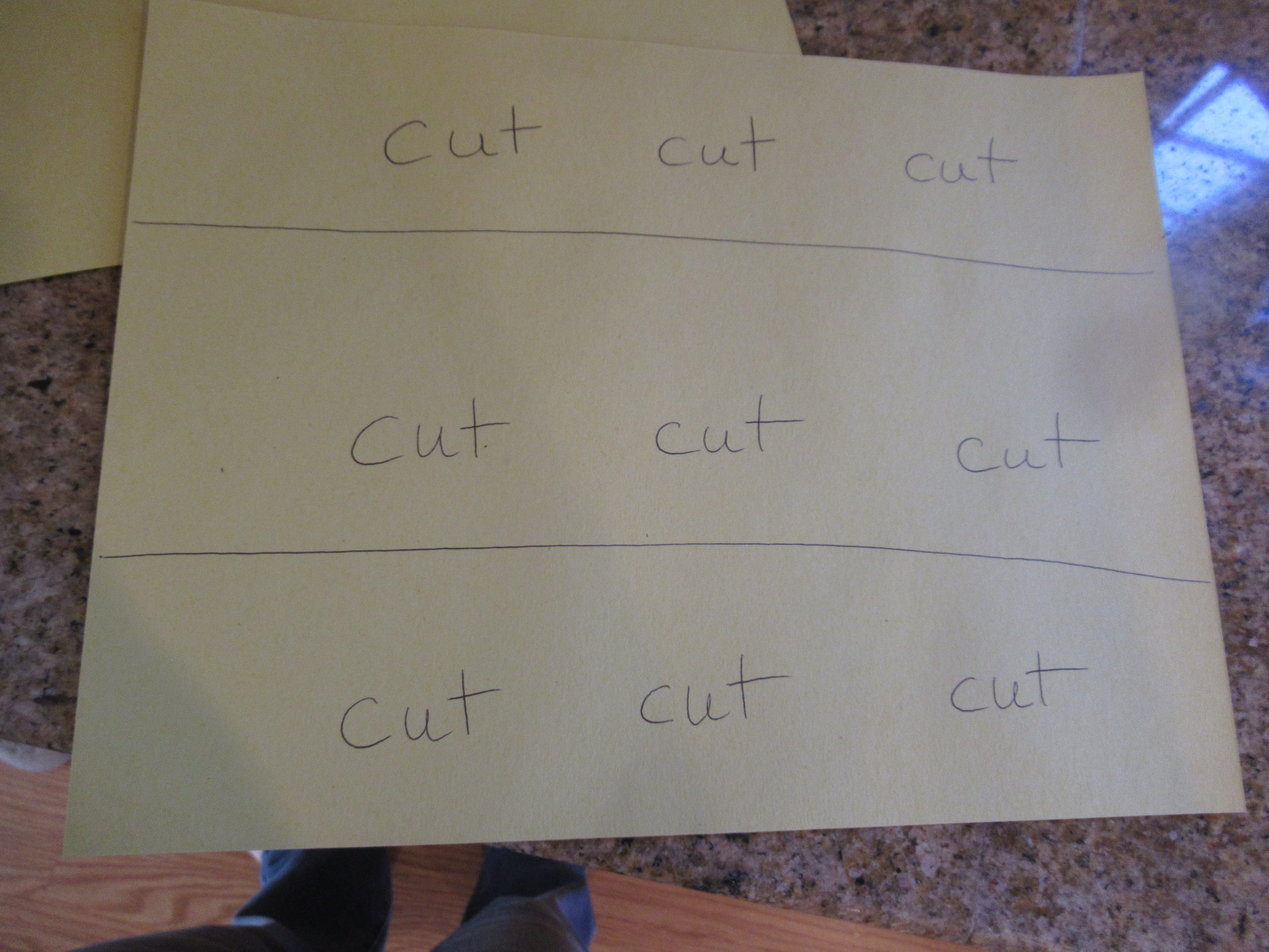 To be honest, I only had enough contact paper to cover half of the table, but that didn’t seem to matter to Veronika. Place the contact paper on a tabletop, sticky side up, and secure with masking tape around the edges.