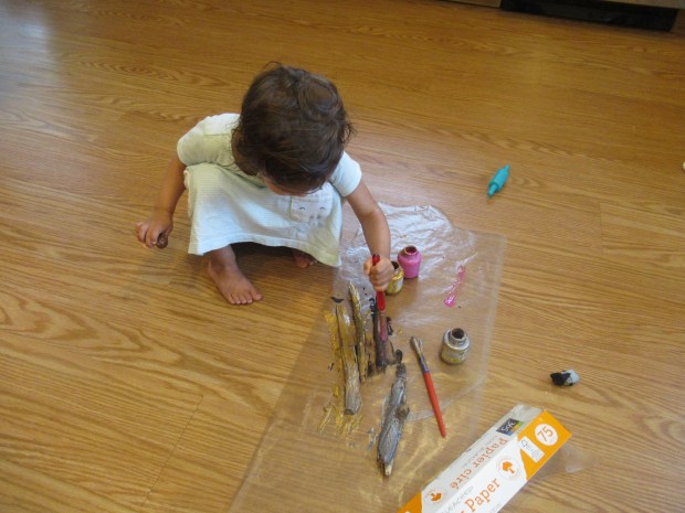 Of course sticks are great for learning, too. Collect a few and then sort them by some attribute, whether length, color, or another feature. We then decided to take a few favorite sticks home, where they were perfect for arts & crafts!