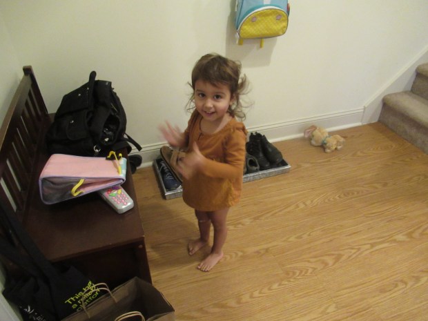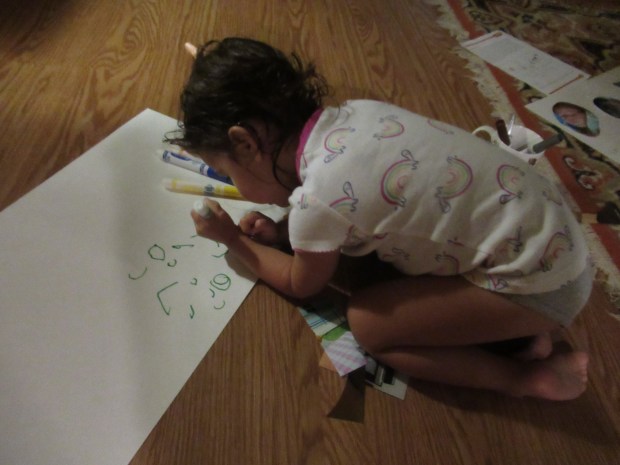 Our next game was to search for opposites. One person would spot an action, emotion, or other concept and the other person had to find name its opposite. Little sister Veronika loved helping with this one, so for example if one person had to stop, the other had to go!