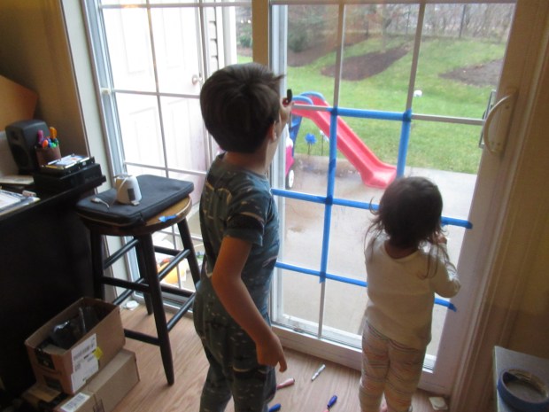First up was Santa’s Light Up Workshop. Their favorite part by far was decorating the wooden sides of the workshop with markers first, Veronika delightedly scribbling and Travis taking great care to make everything red and green holiday colors.