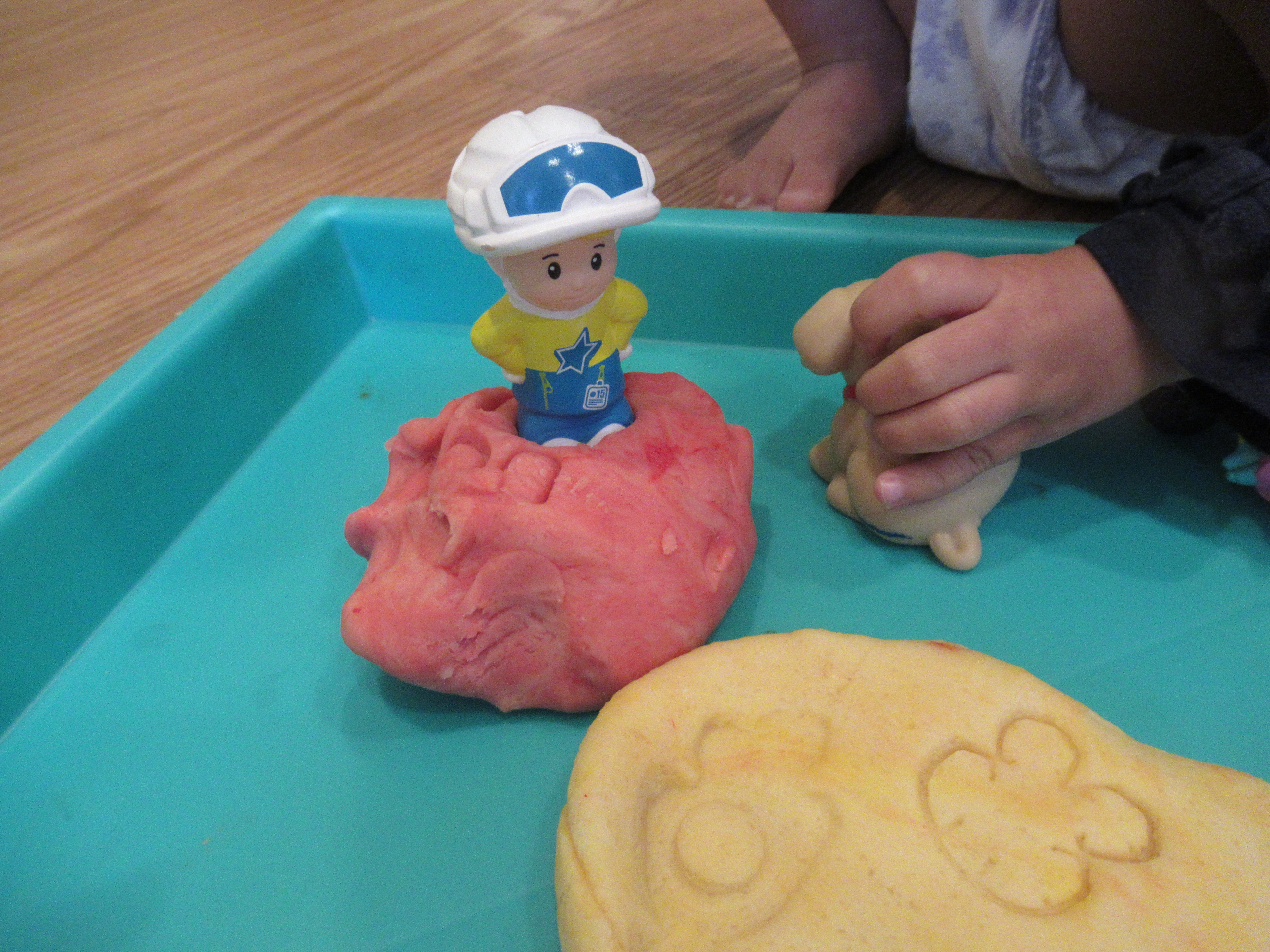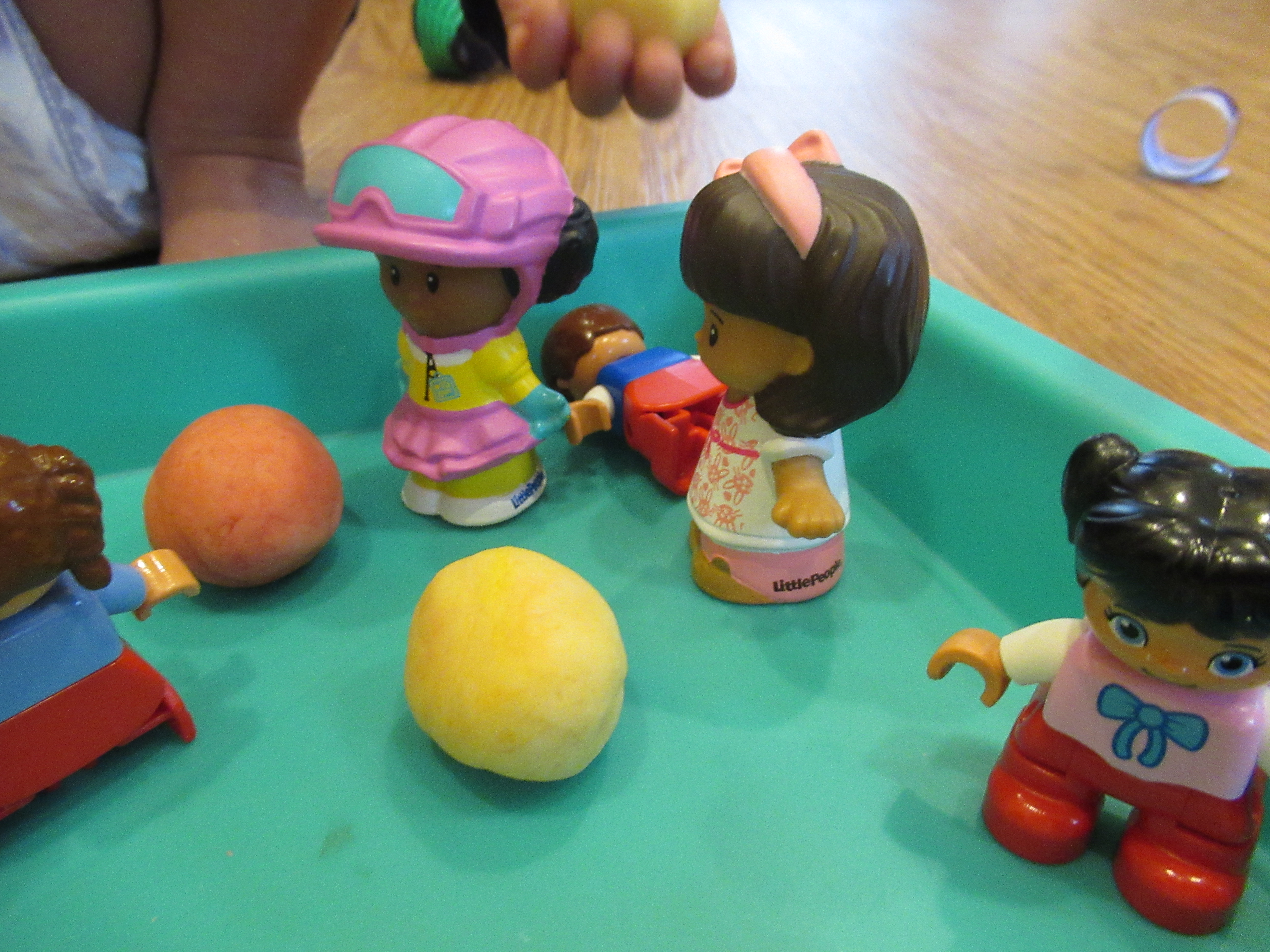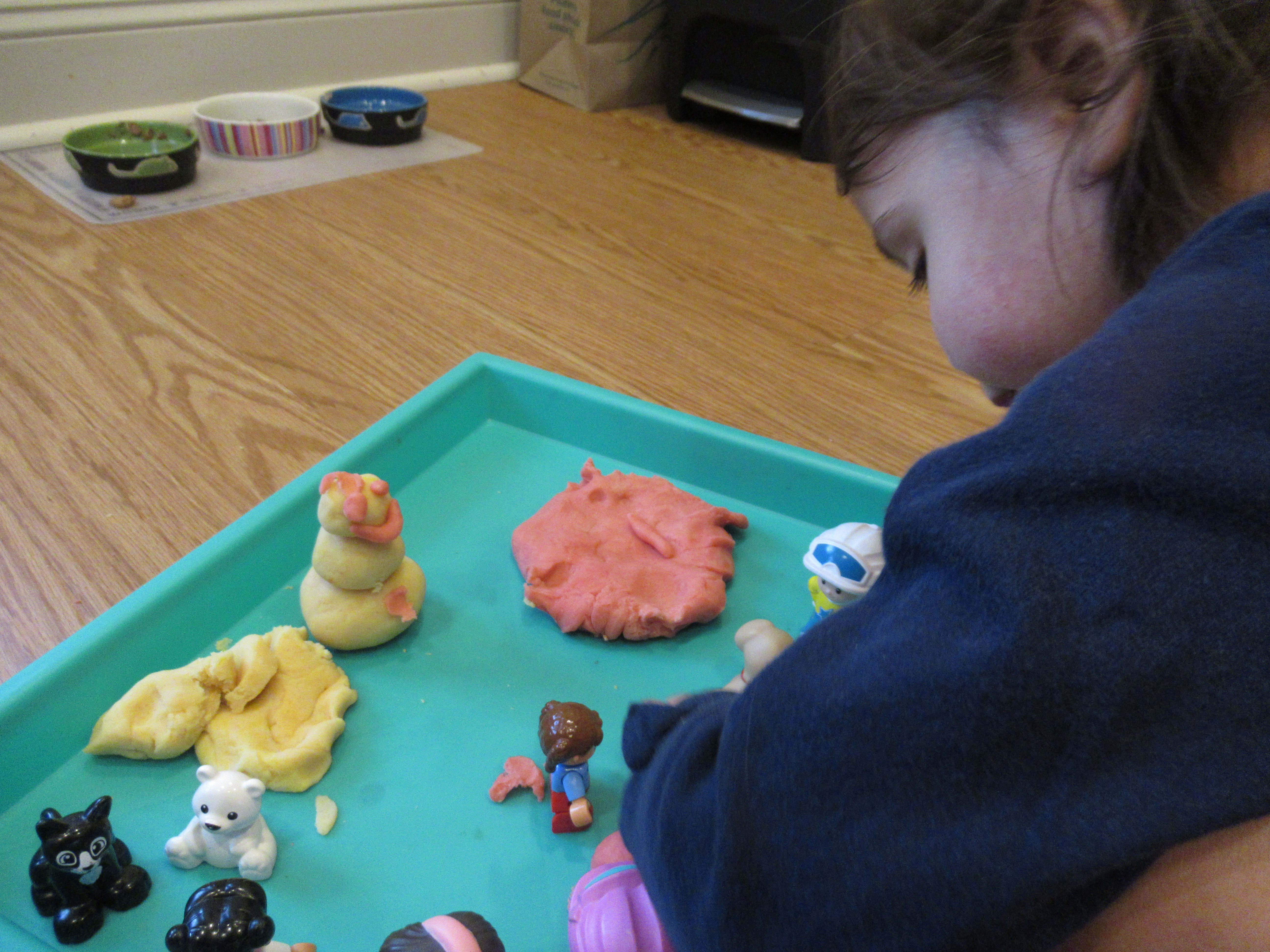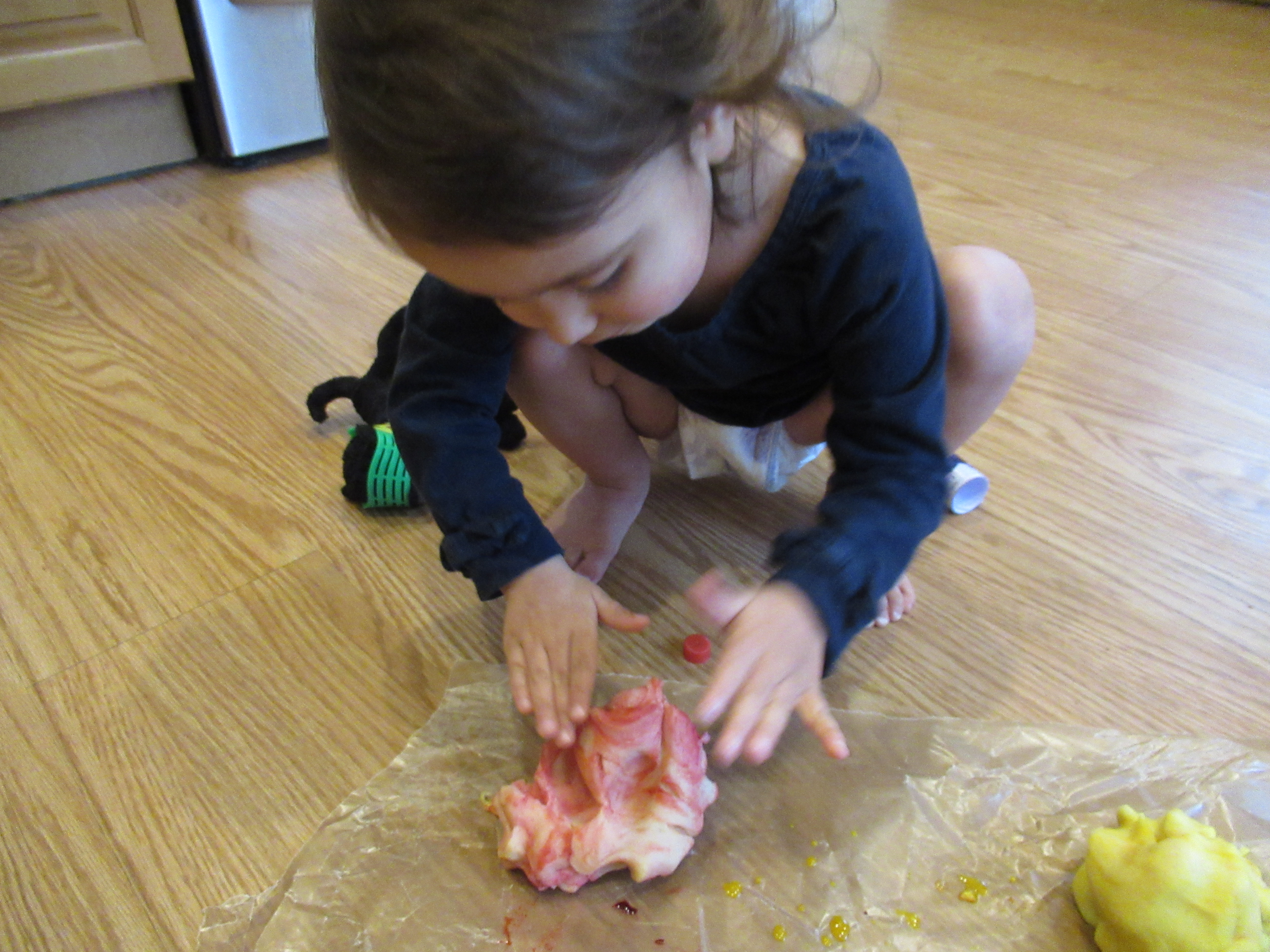Veronika now became inventive with the project. First, she poured the cup of water I’d used into the cup of paint, and tested how this mixture looked on the paper.