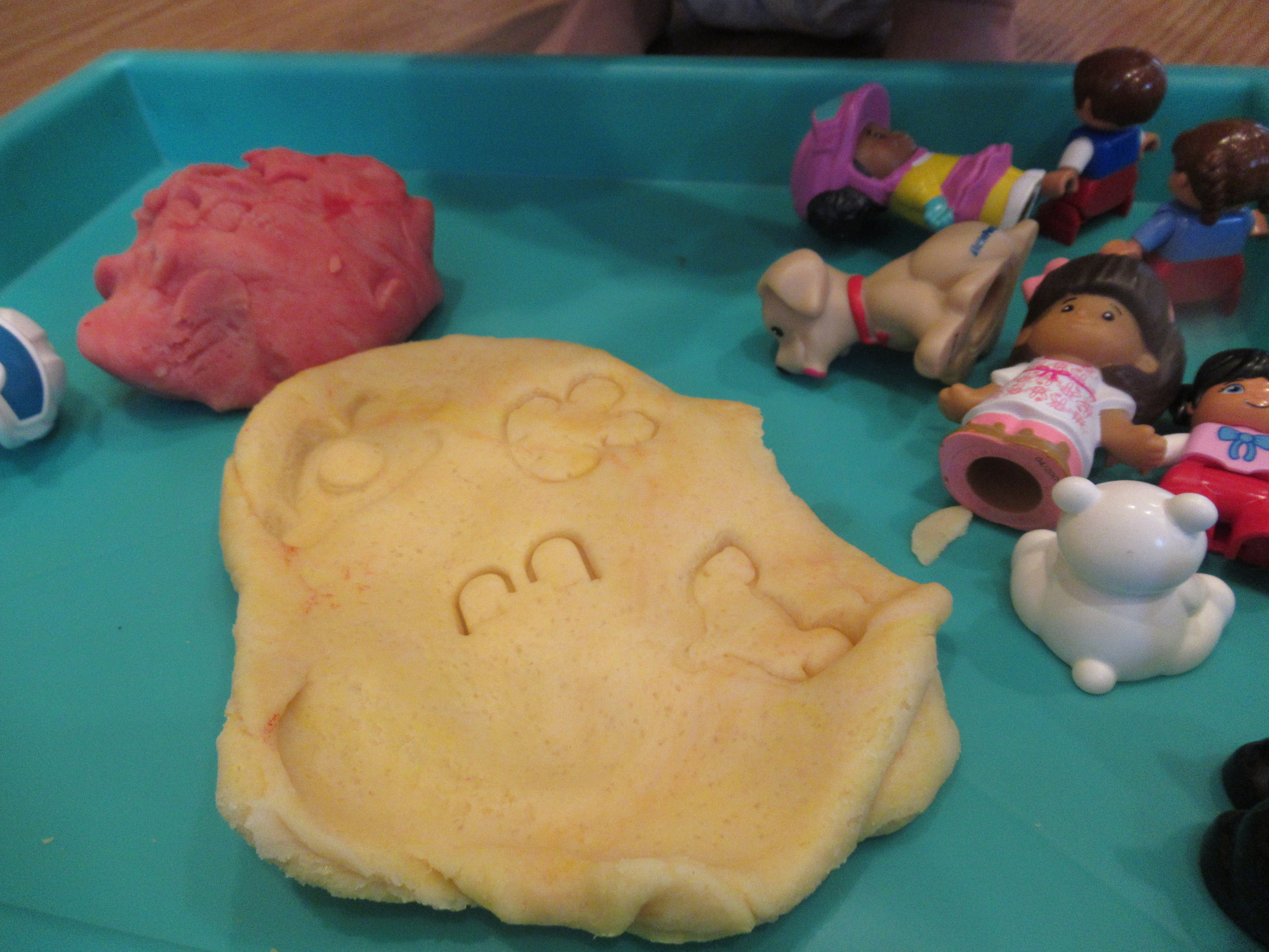 Veronika loves the look of watercolors, but they can be hard for her to use because she often forgets to alternate her paintbrush between the cup of water and the tin of dried paints. This alternative method creates a similar smeary, watery look, but was easier for her to do.