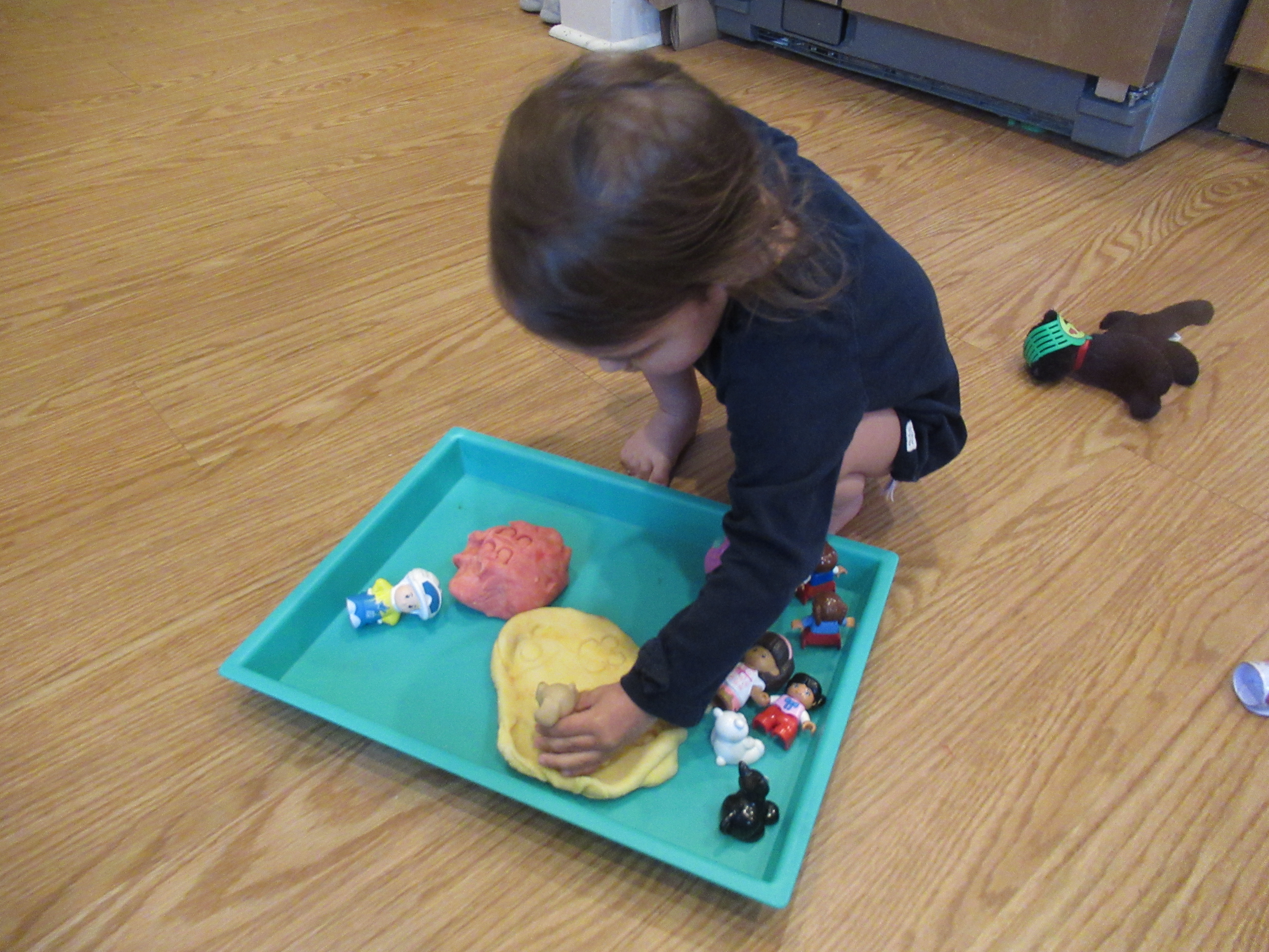 Then she poured the whole watery mix over the paper; it was a good thing the paper was thick! She made swirls through the goopy mess with her paintbrush, making deep lines.