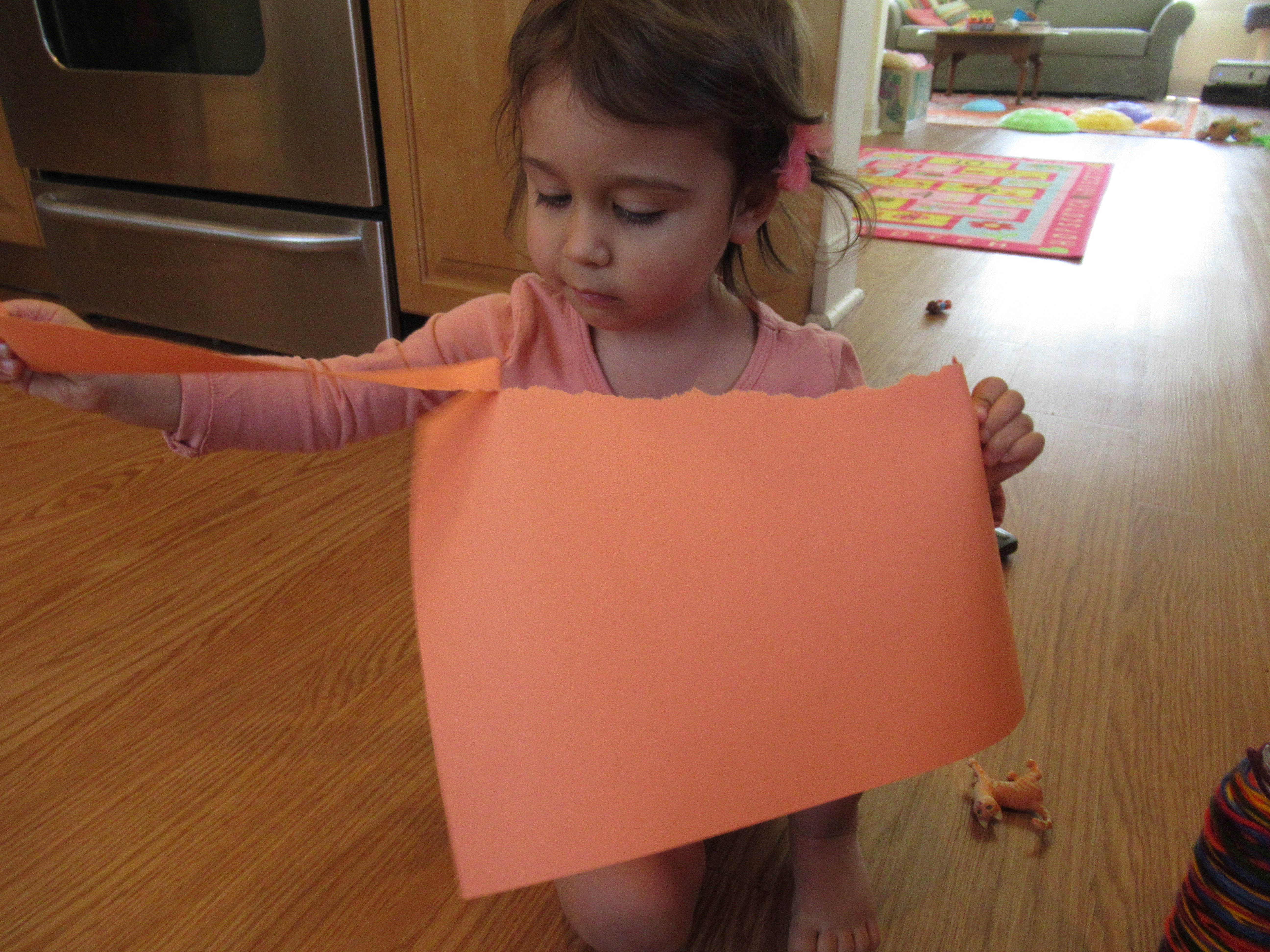 First up was ripping paper, and I find that it’s easiest for Veronika if I make a small tear, then let her finish it. The ripping is great fun and it led right to…