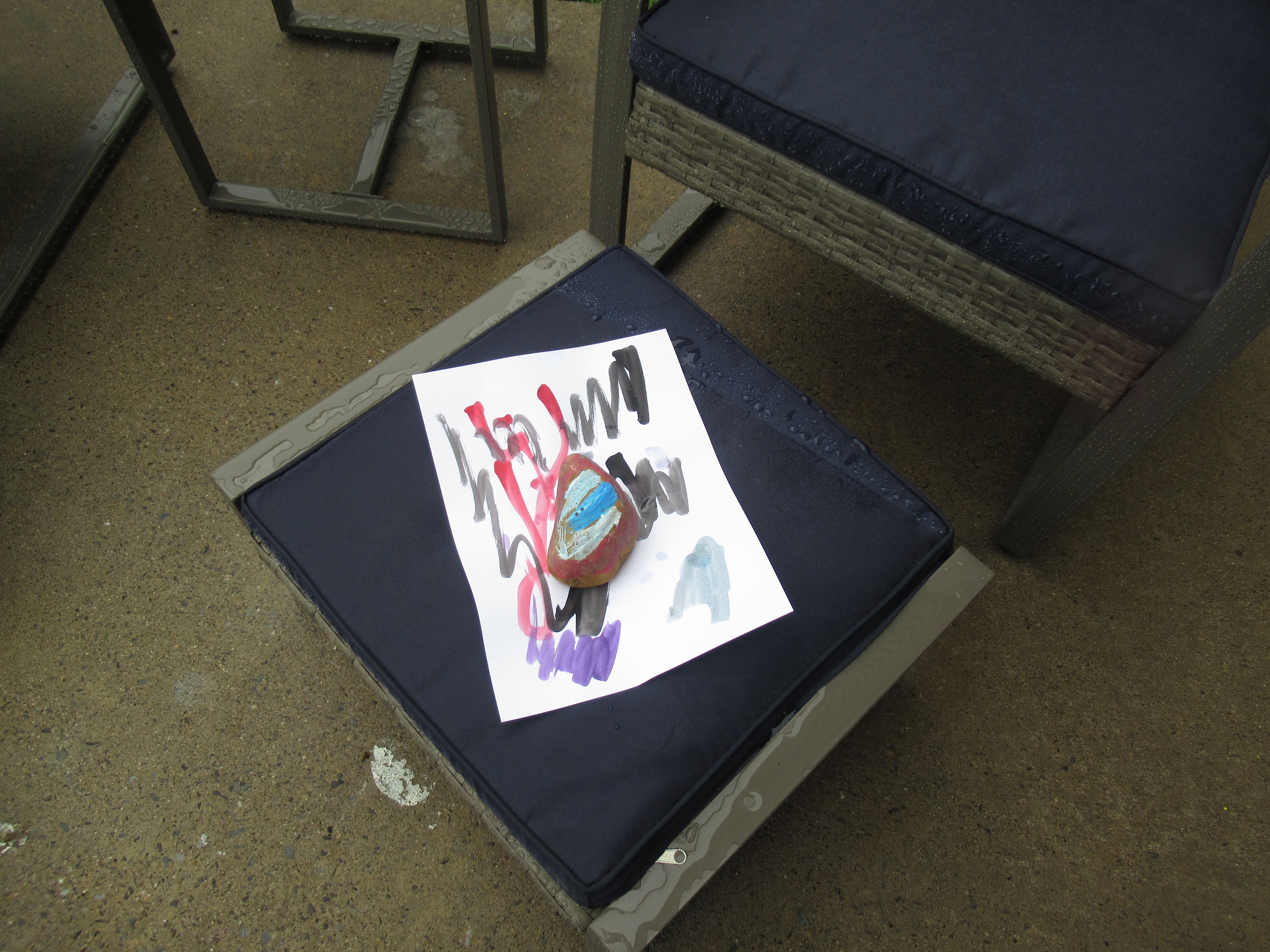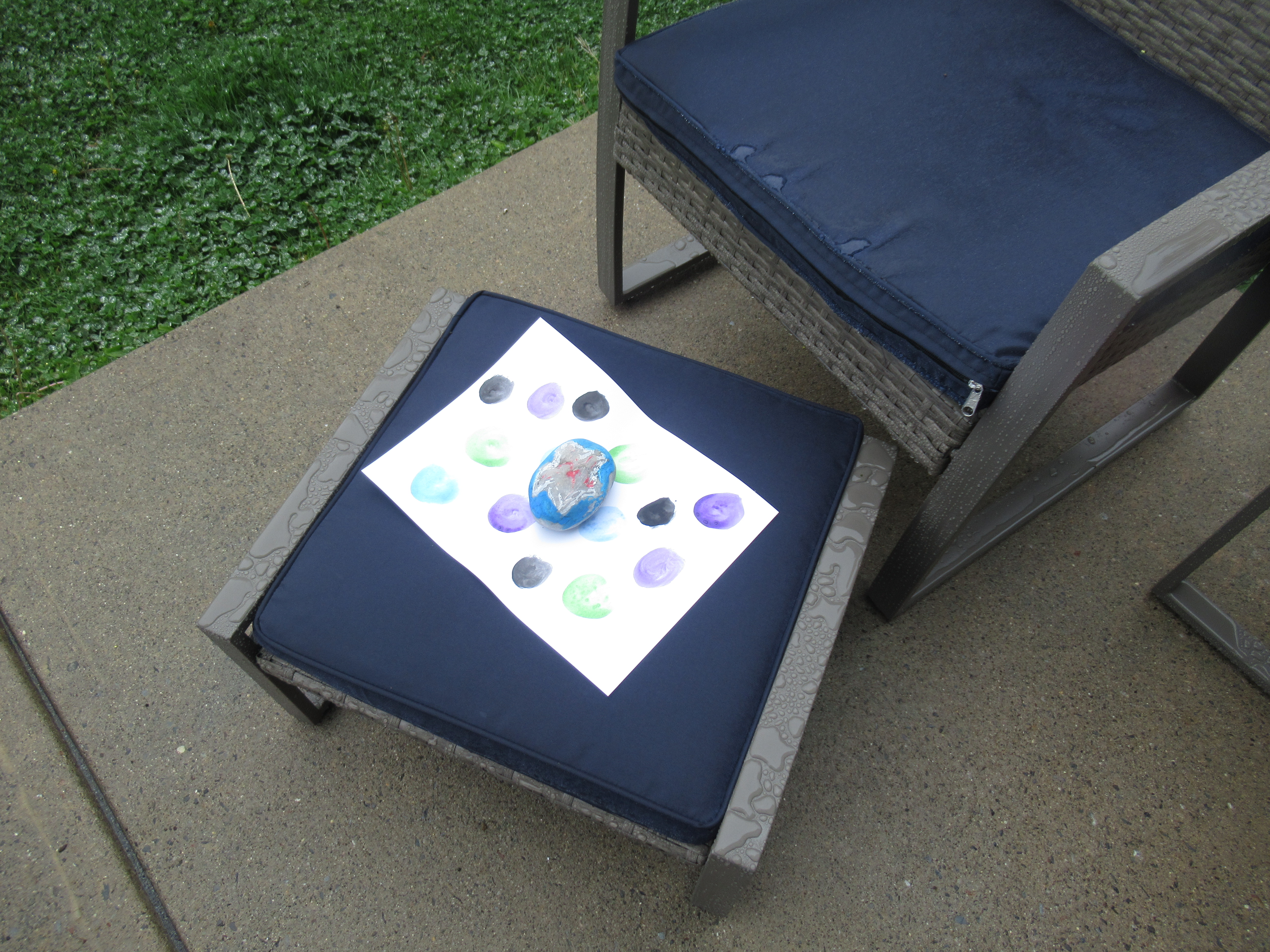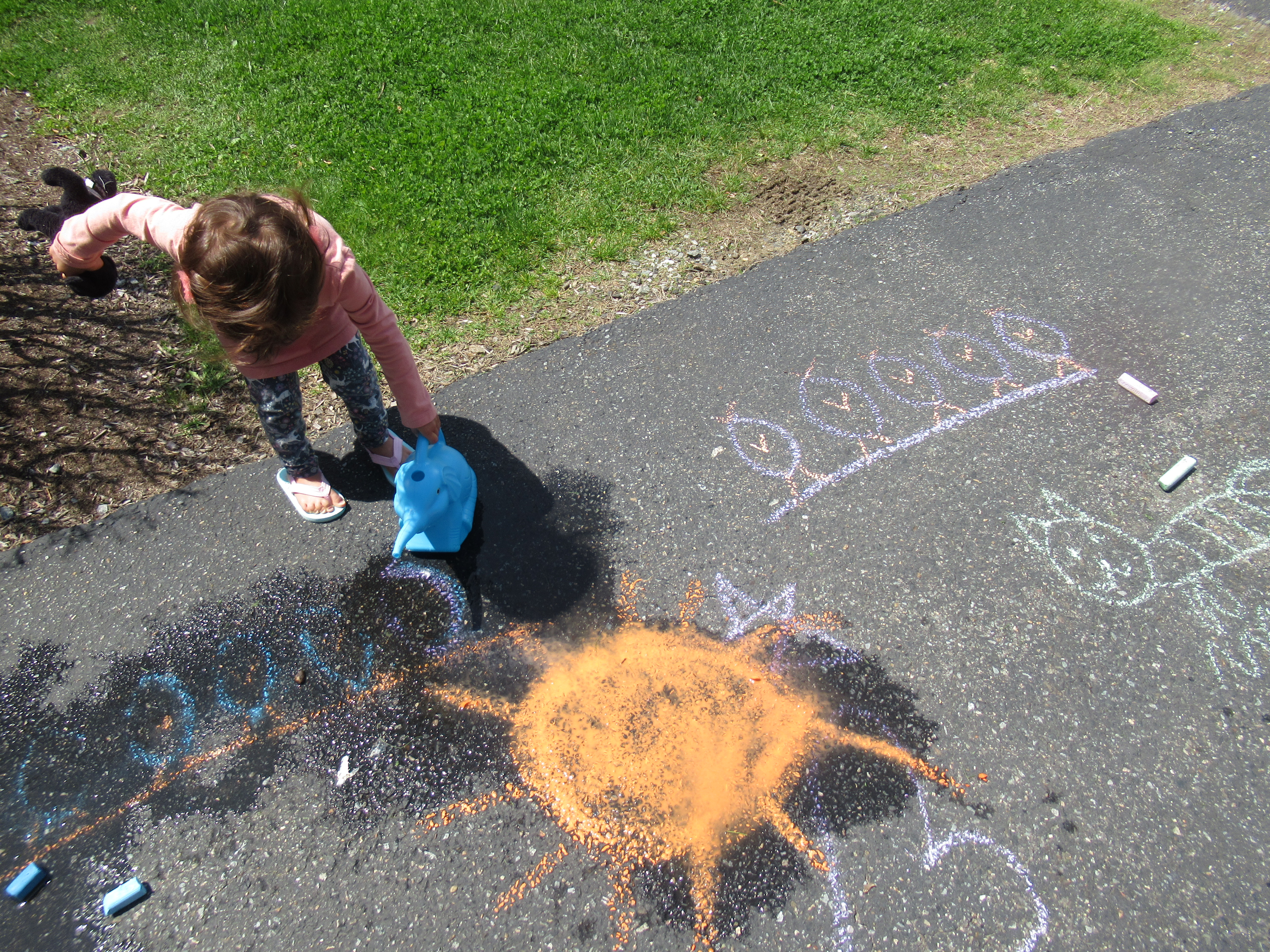 The sun was shining, so we took our next bit of destruction outside. Chalk is fantastic because your child the instant satisfaction of watching chalk marks instantly disappear under just a little water. As a bonus, chalk is really fun to use on wet pavement.
