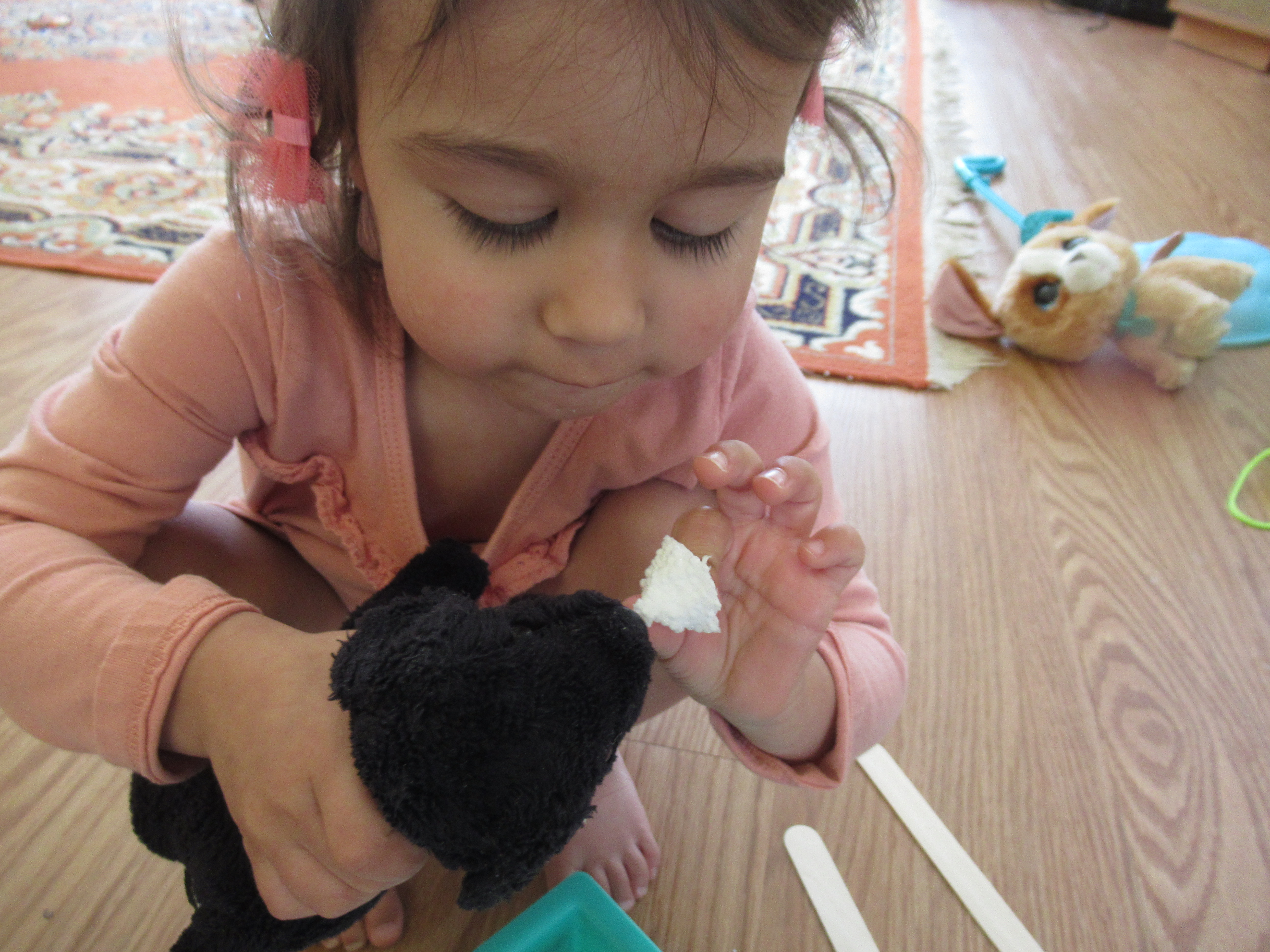 She loved the tiny pieces that resulted, more so than the act of destruction, pretending to “feed” them to her stuffed puppy.