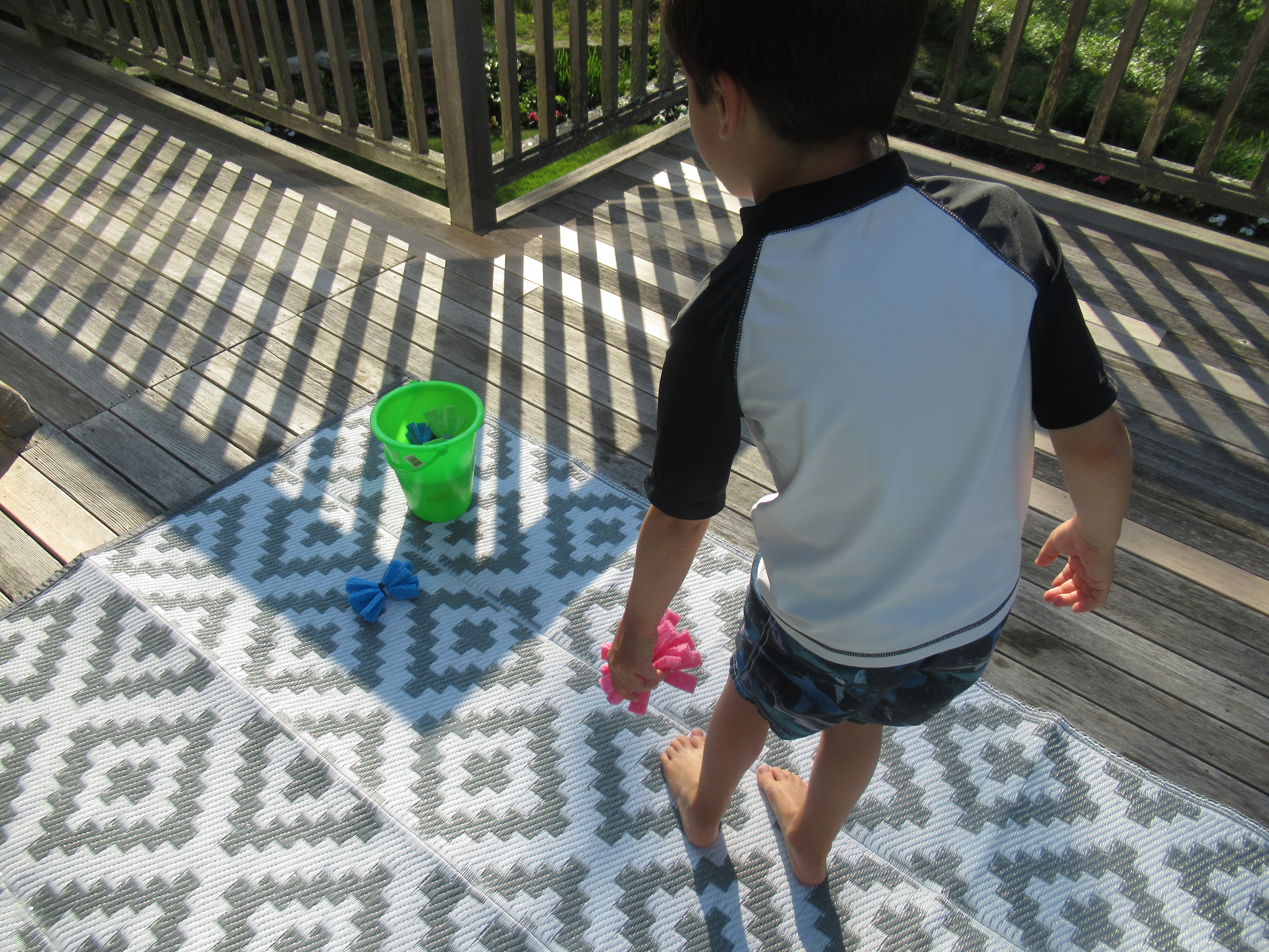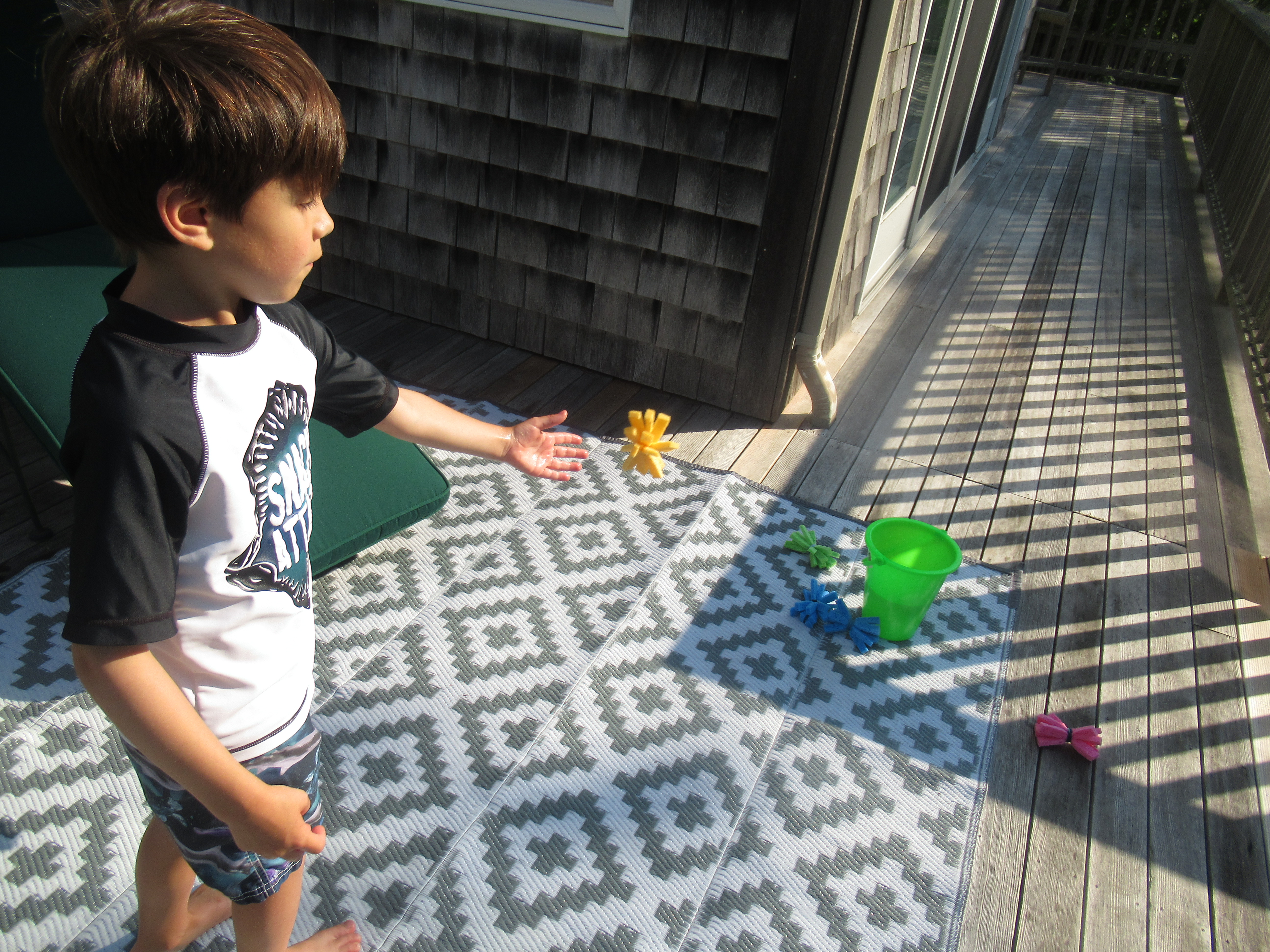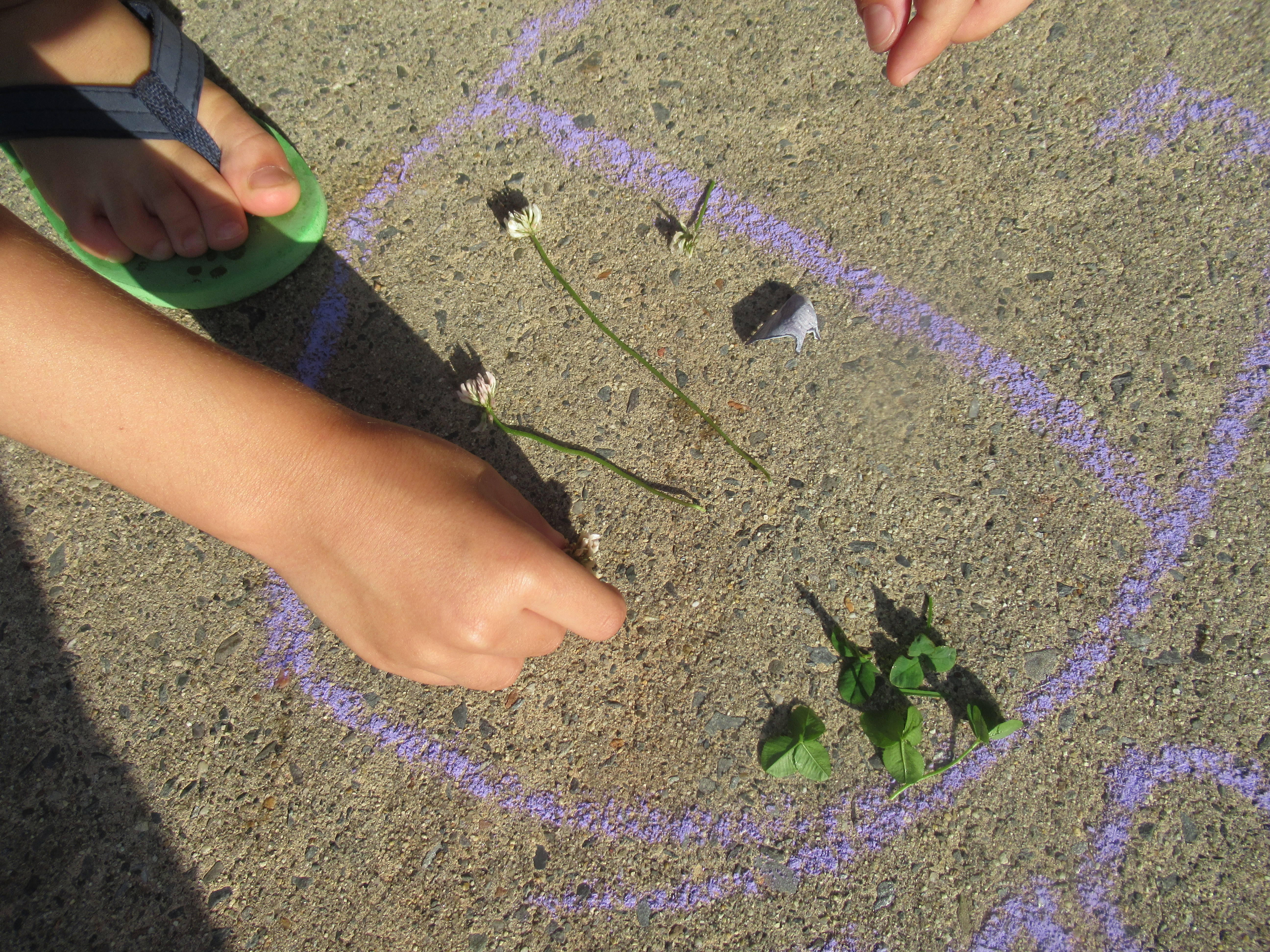 In the morning, we headed out to the patio with the pops and thick white paper. Sure enough, the food coloring made beautiful swirls of color, and the hot sun meant our efforts were quickly rewarded with smudges of “paint” on the paper.