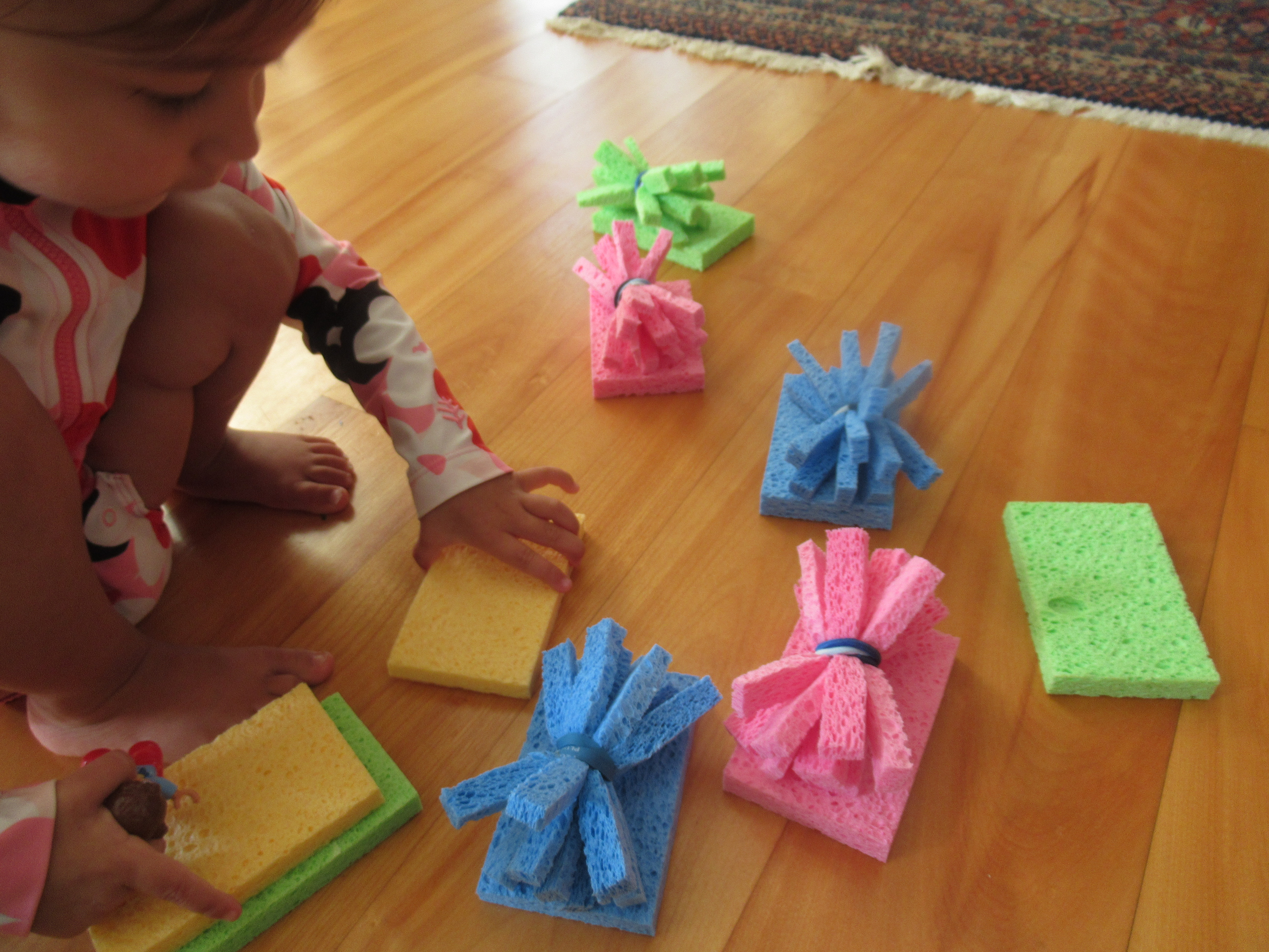When I set this out the next morning, both kids were ecstatic. Spoons, salt, and warm water to pour helped them unearth the buried treasures. Paintbrushes, chisels, or spritz bottles would be fun, too!