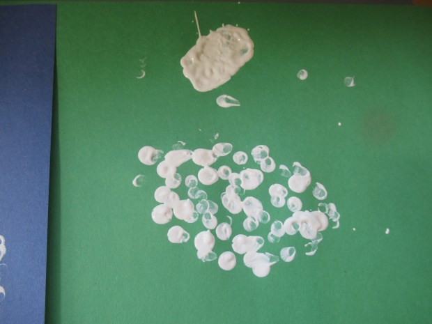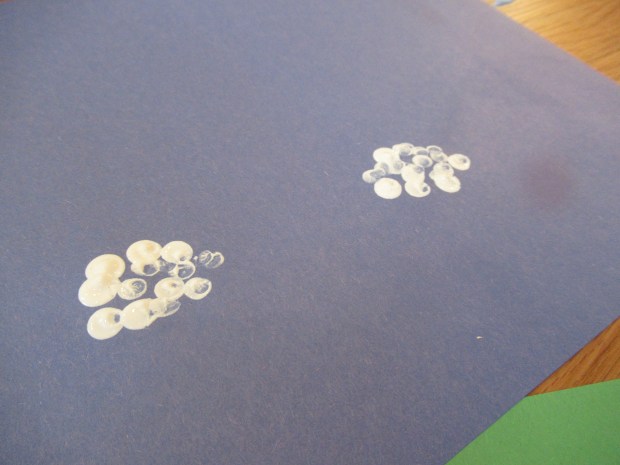 She proved remarkably adept at finding even tiny holes that needed to be filled with cotton until we had one very woolly sheep. “It’s like stickers!” she said with delight at the way that the cotton balls stayed on.