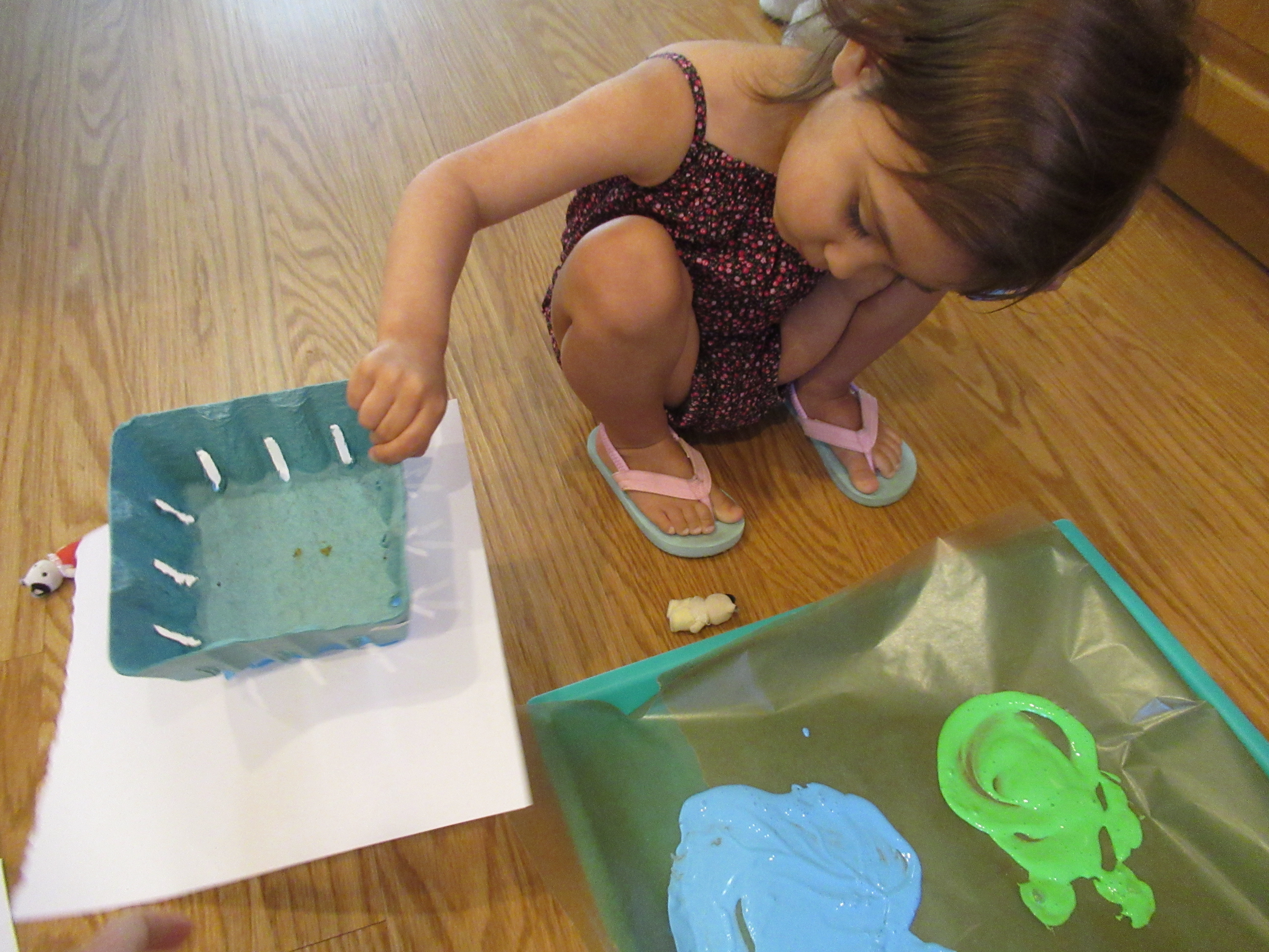 Next she wanted to try squeezing out the red glitter glue and was so proud she could do this all by herself. And then of course she needed to squeeze out more white glue.