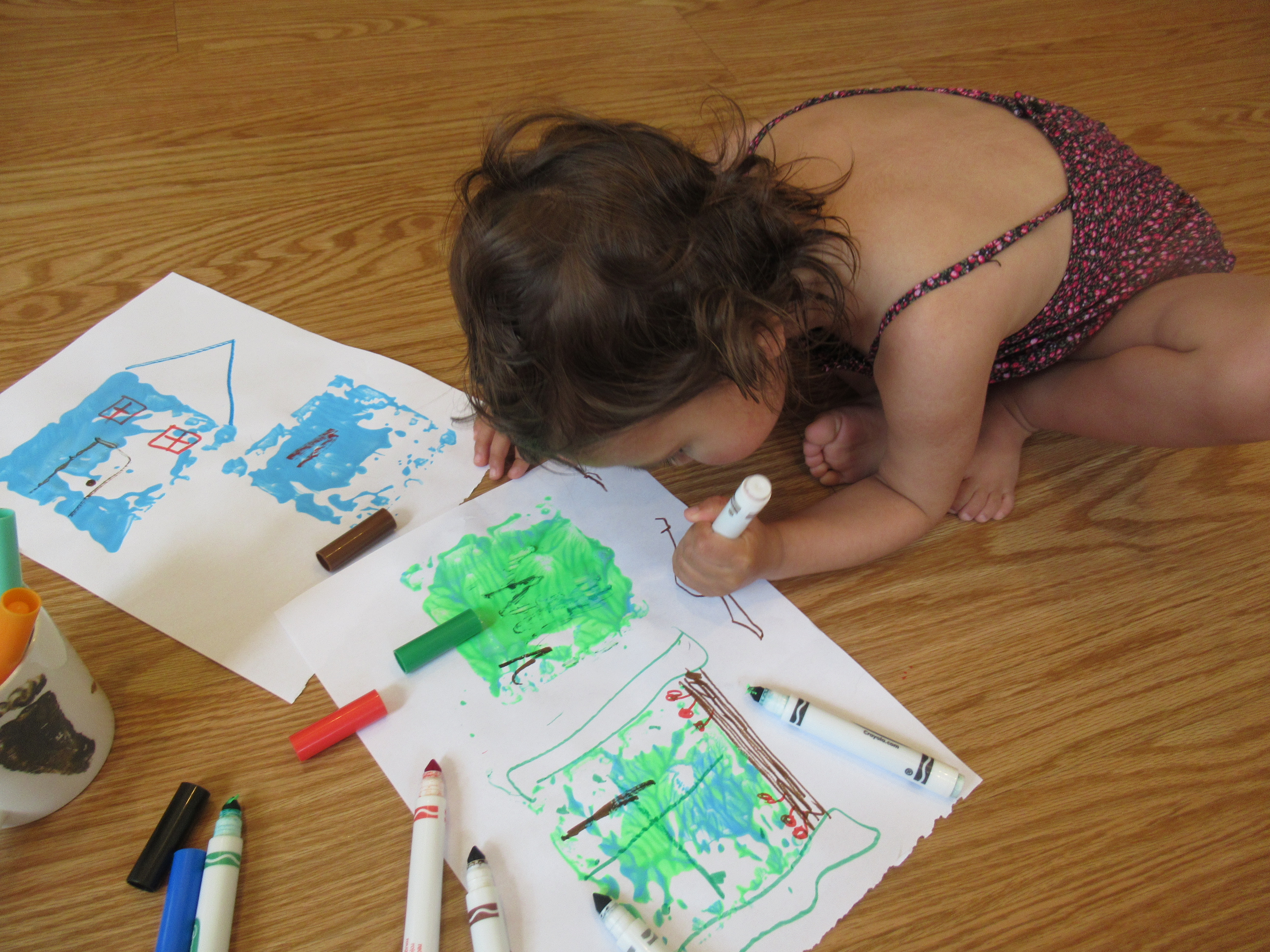 Pretty soon we had a vibrant summertime collage. She had so much fun that we immediately filled up a second sheet of paper!