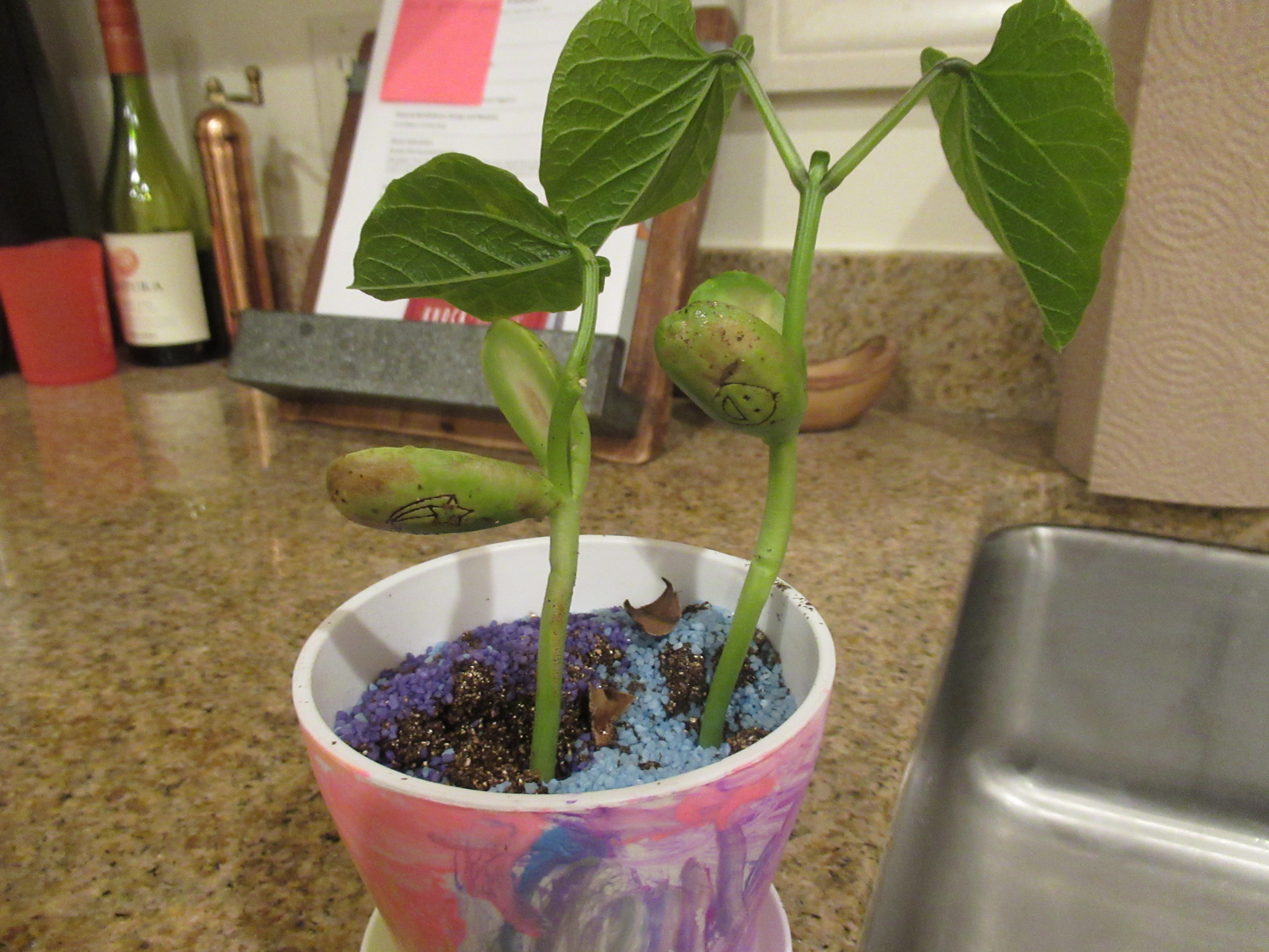 Three days in, the magic beans were sprouting. After a week, we had a beanstalk worthy of Jack’s attention!