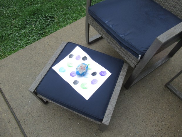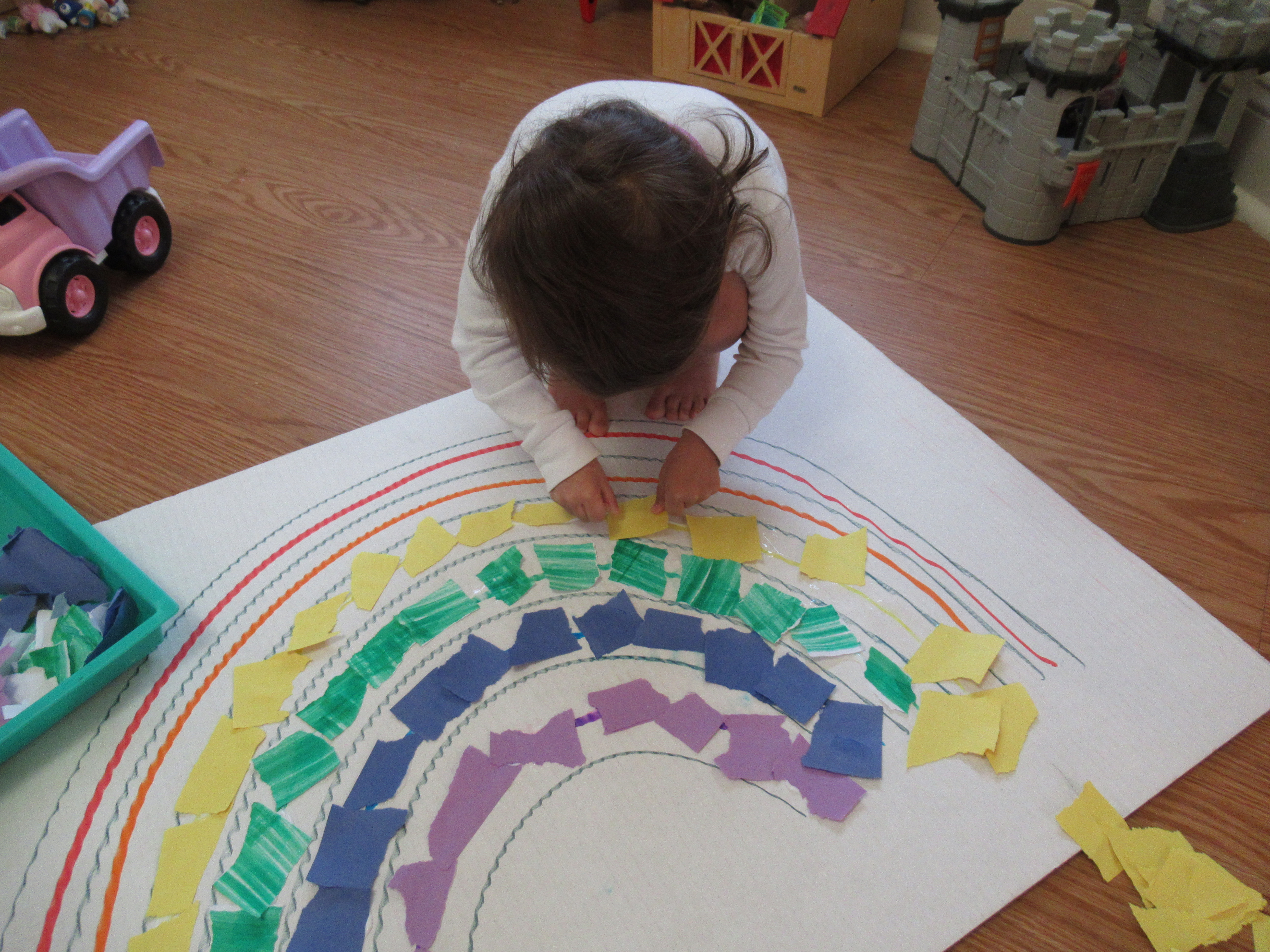 To start, I outlined a few “frames” on our glass patio door with masking tape, just waiting for each section to contain a work of art by the kids. I then set out a set of dry-erase markers in a variety of colors.