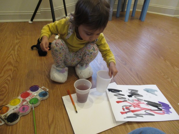 Veronika immediately wanted to decorate, especially when I drew one little “snowflake” to spark her creative juices. She told me she was drawing more snowflakes, presents, and more!