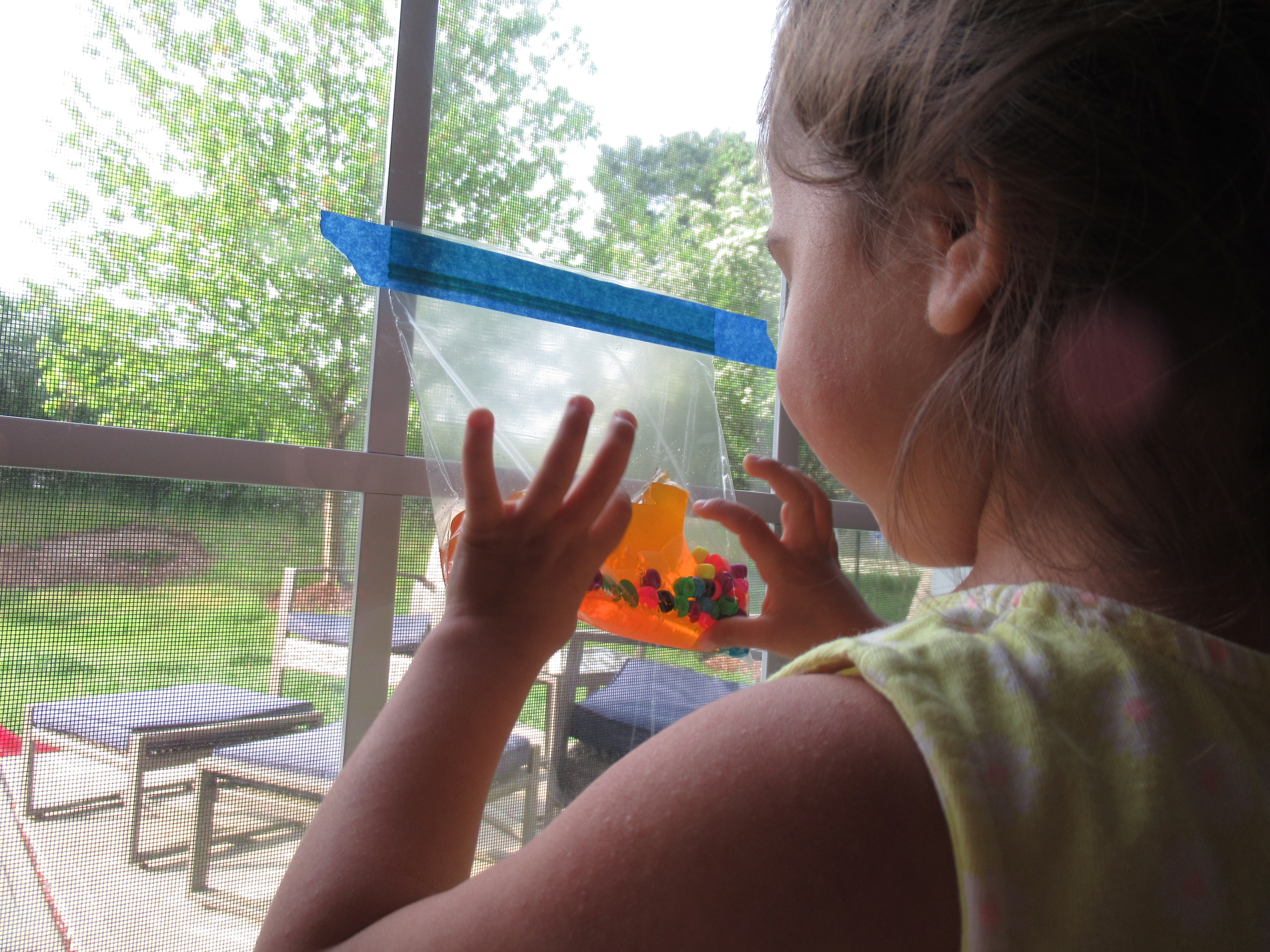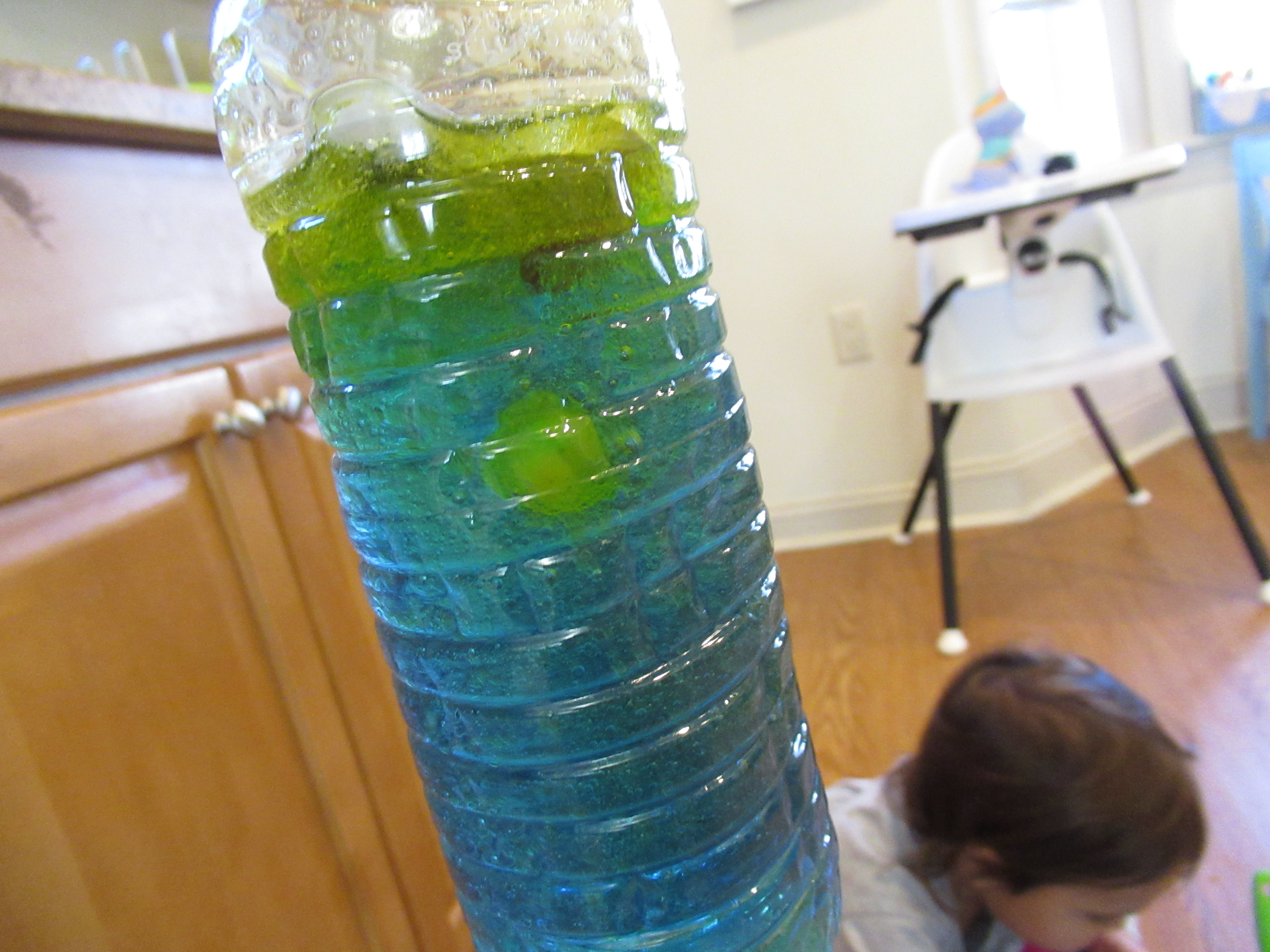 The first official day of summer was a hot one in our area, with abundant sunshine. I used the sunny day as a jumping off point to discuss all kinds of different weather with Veronika, and then to make it hands-on with these fun weather bottles.